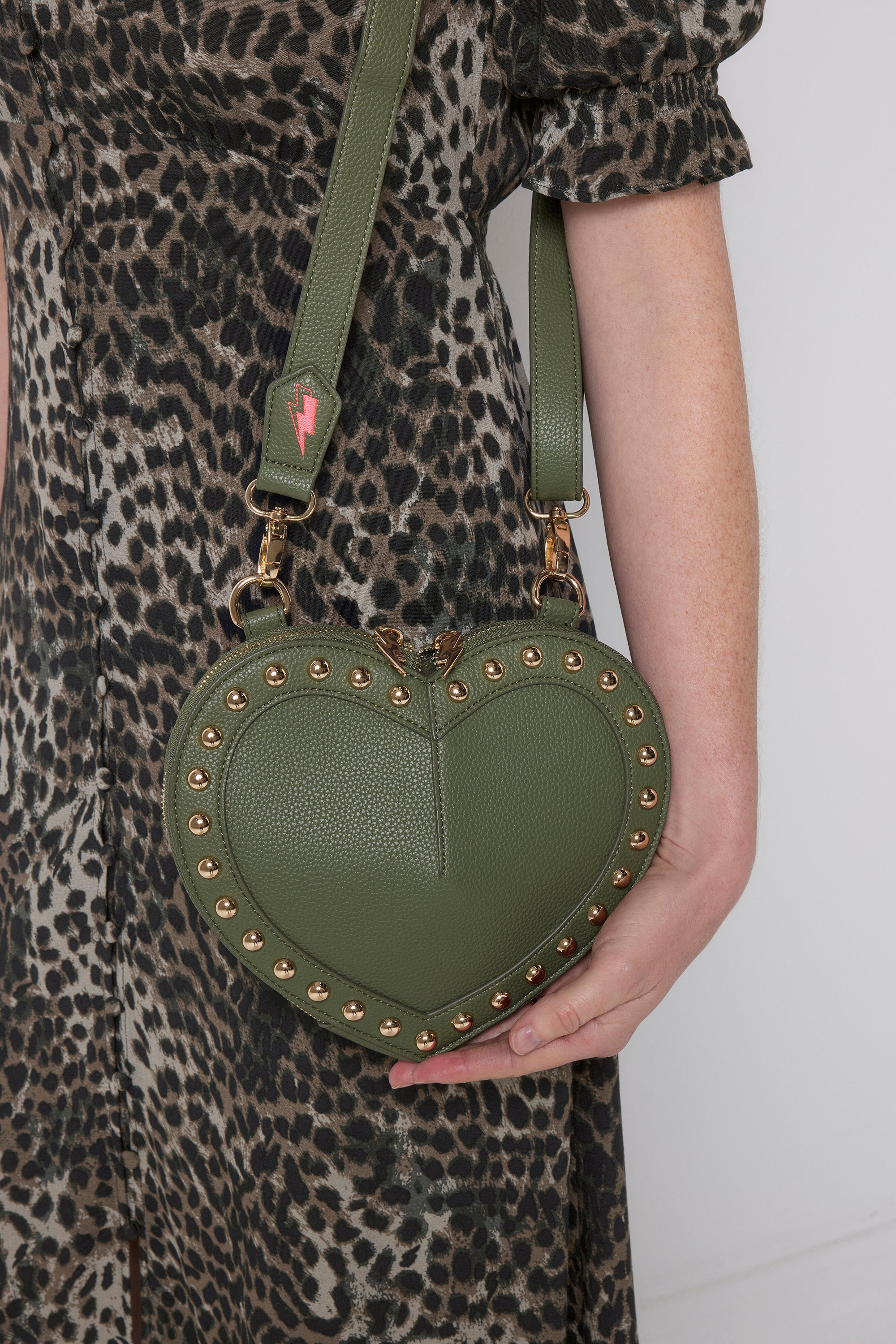 Make every outfit feel that little more fun with our faux leather khaki heart-shaped bag. Easy to throw on and just the right size for your essentials, it's the playful piece you'll wear on repeat.