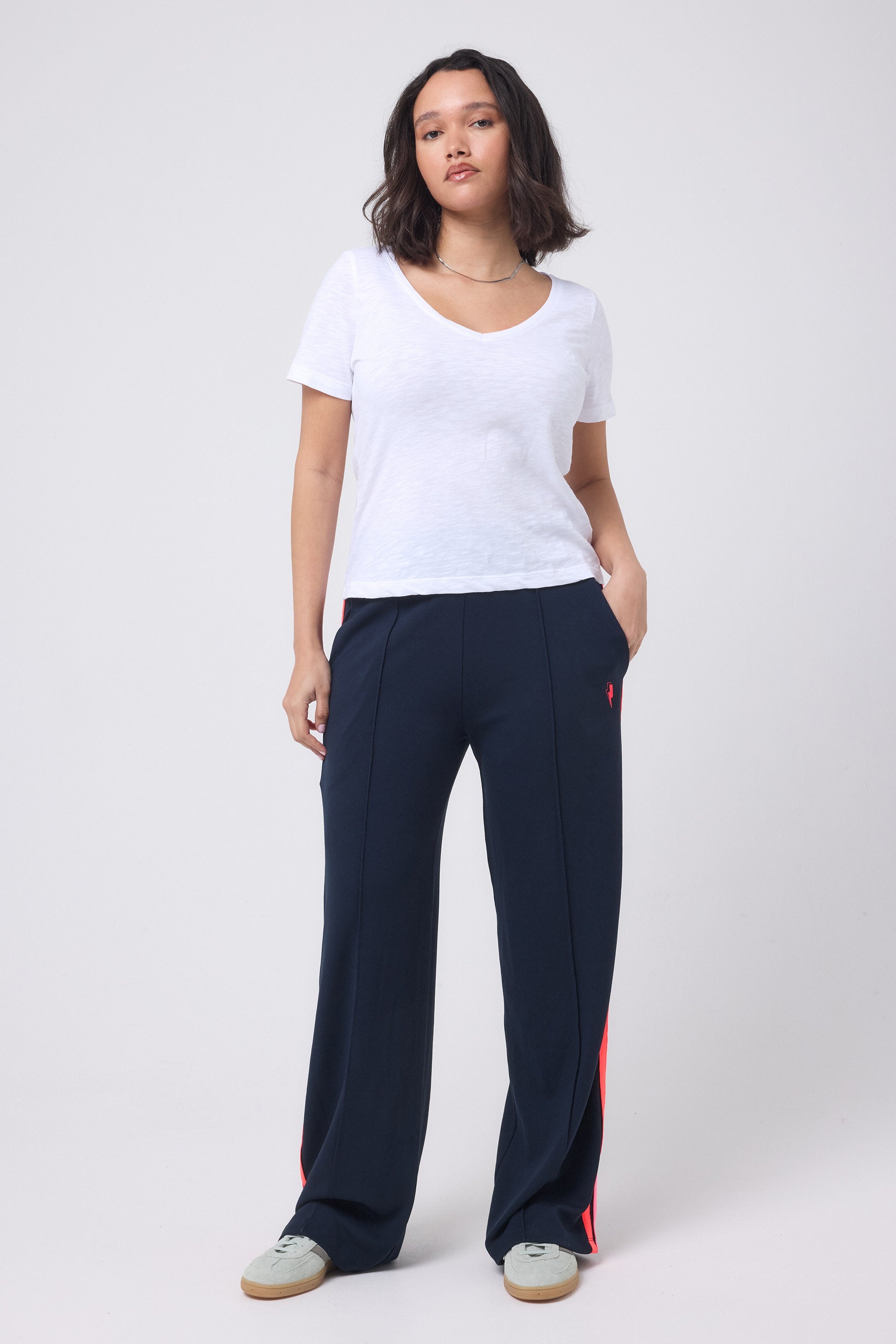 Our new jersey wide leg trousers introduce a fresh, flattering silhouette to the collection. Designed with a mid-rise fit that sits at the mid waist, they fall into an effortless wide leg shape for all-day comfort and style.