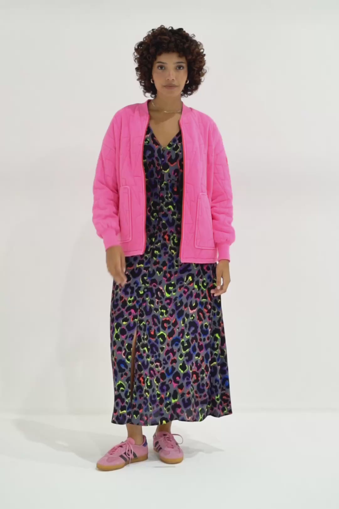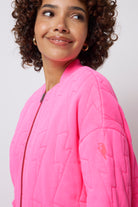 Neon Pink Lightning Bolt Regular Fit Quilted Bomber Jacket