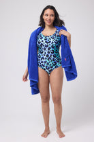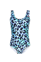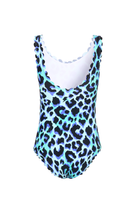 Turquoise with Black and Blue Shadow Leopard Scallop Edge Swimsuit