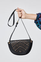 Complete your attire with our beautiful black with gold laser cut saddle bag, it's a real crowd pleaser. Ideal for popping over your shoulder while running errands or heading to a lunch date. It comes with one strap which is adjustable, ensuring comfy wear.