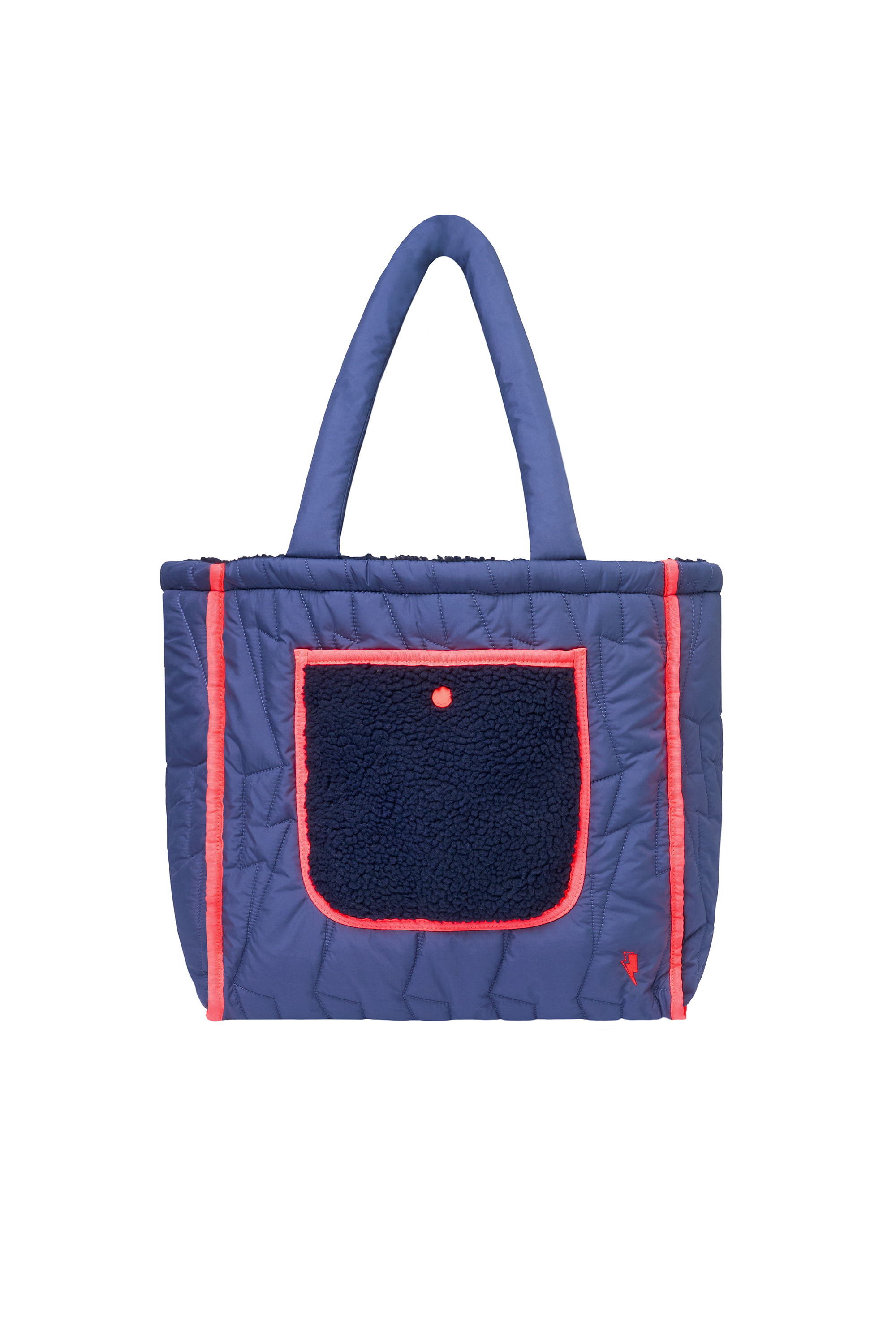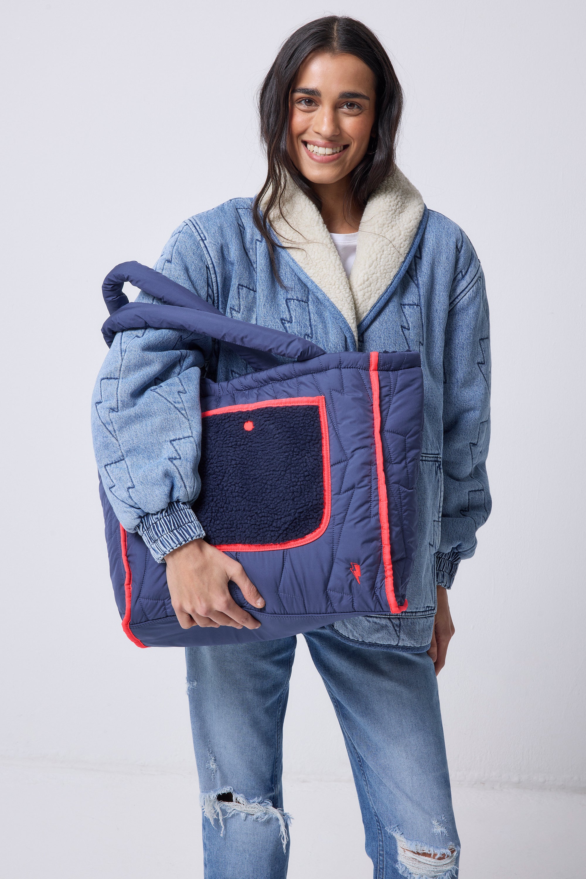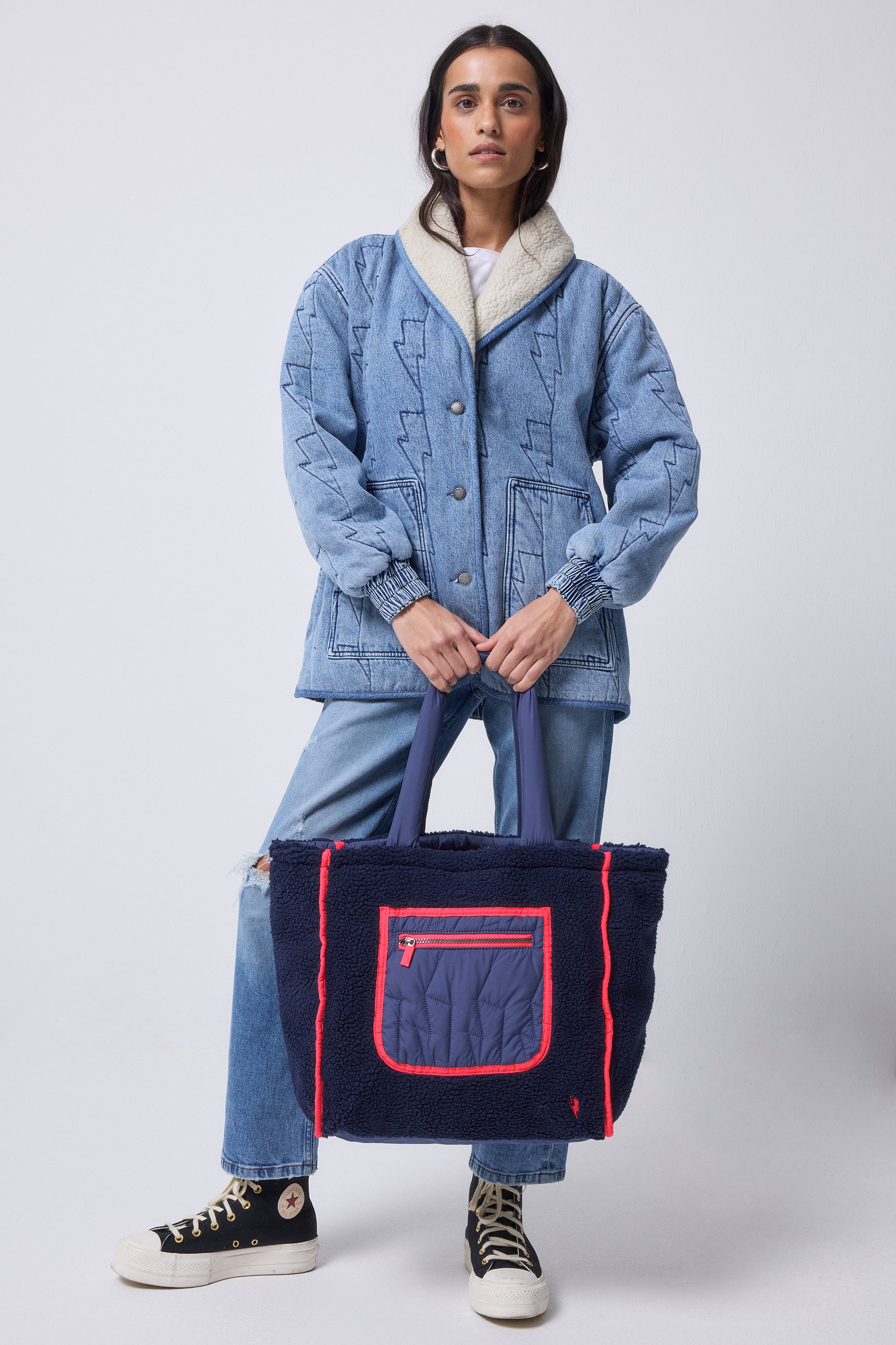 Navy Reversible Quilted Lightning Bolt with Borg Tote Bag