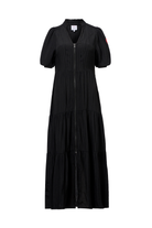 Black Textured Zip Detail Tiered Midi Dress