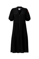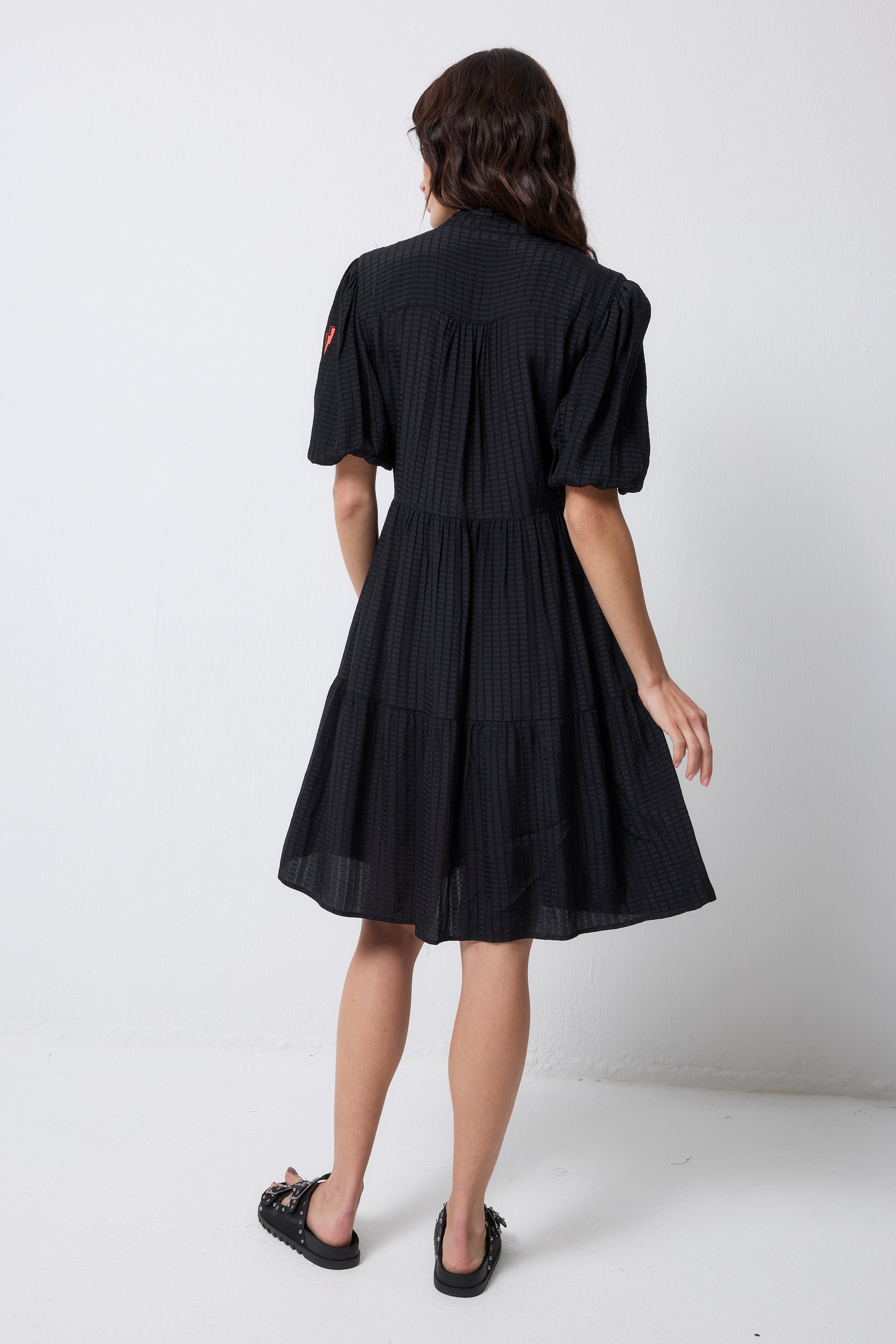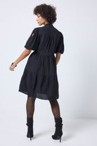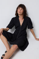 Black Textured Zip Detail Tiered Short Dress