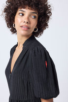 - Short blouson sleeves with elasticated cuffs