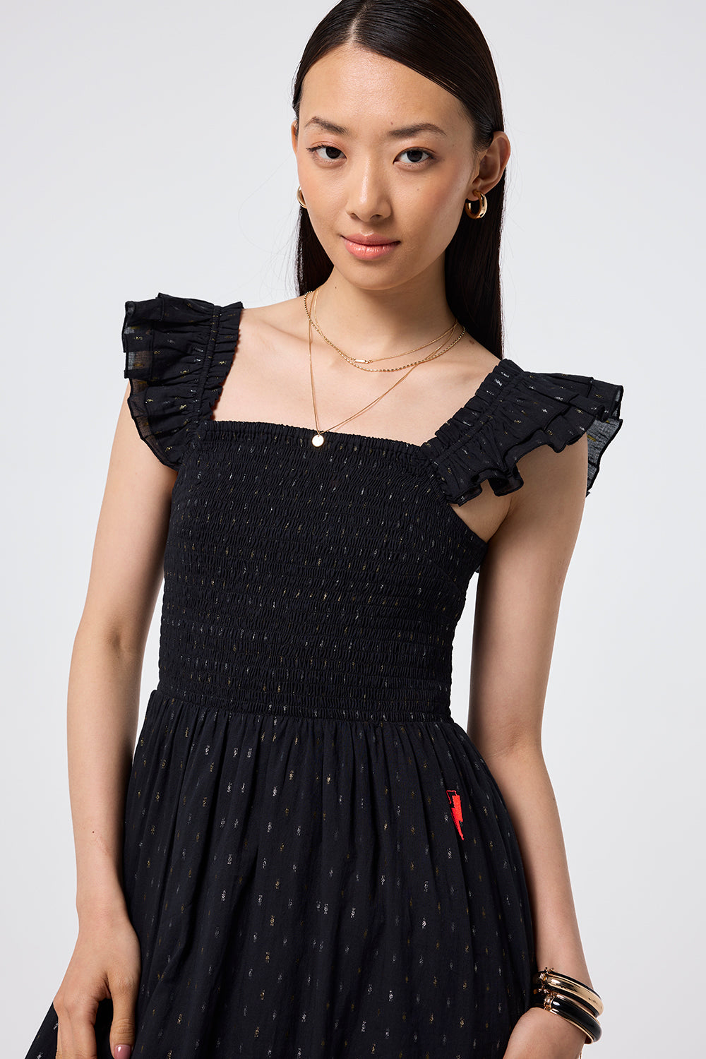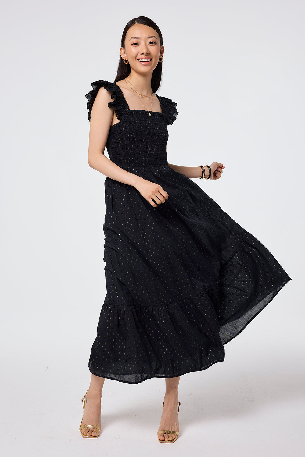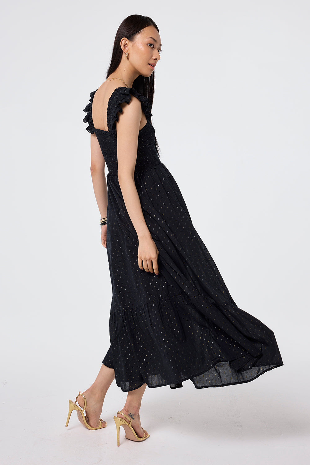 Black with Gold and Silver Lurex Spot Maxi Sundress