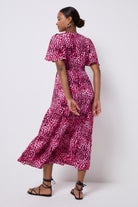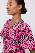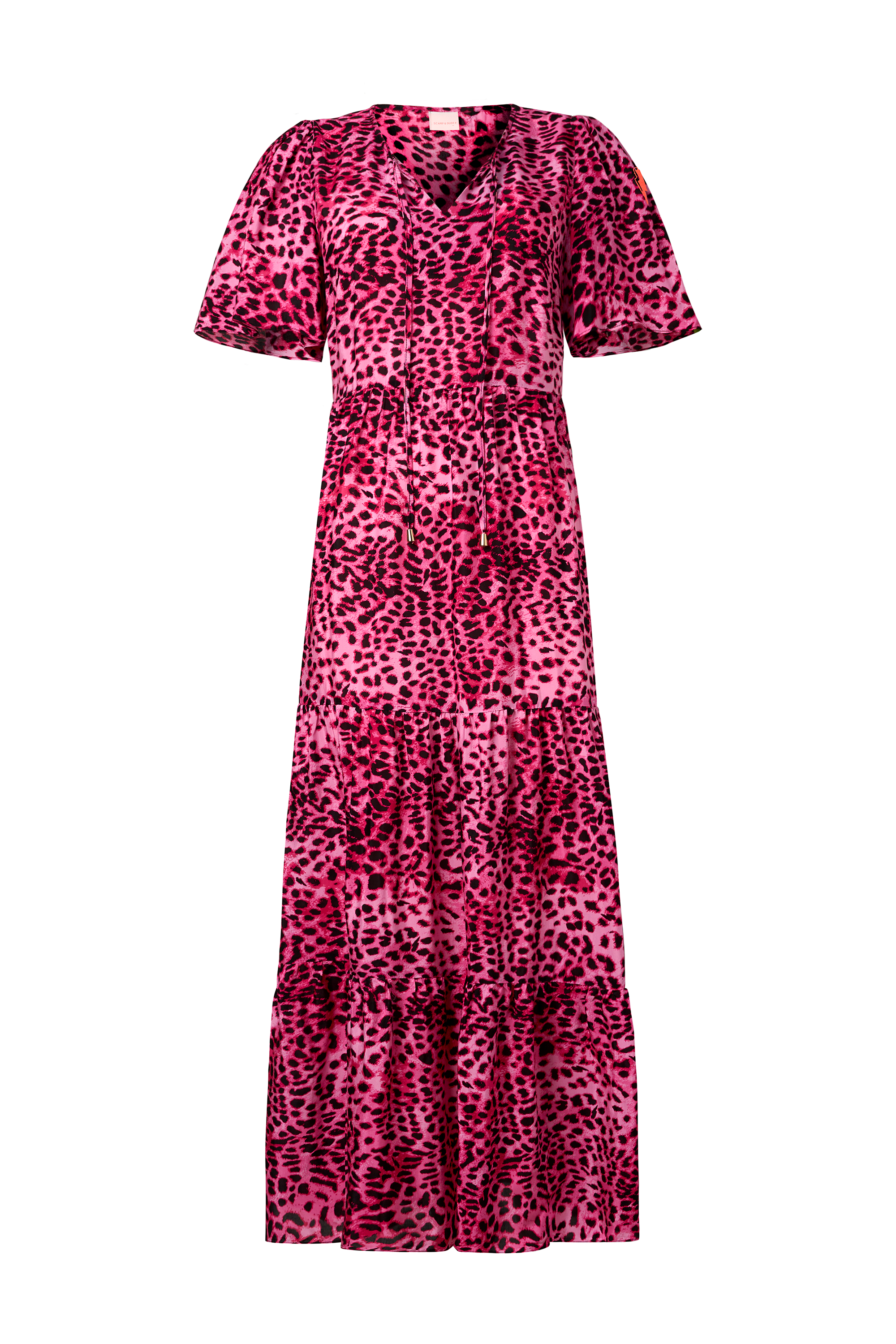 Bright Pink with Black Cheetah Tie Front Maxi Dress