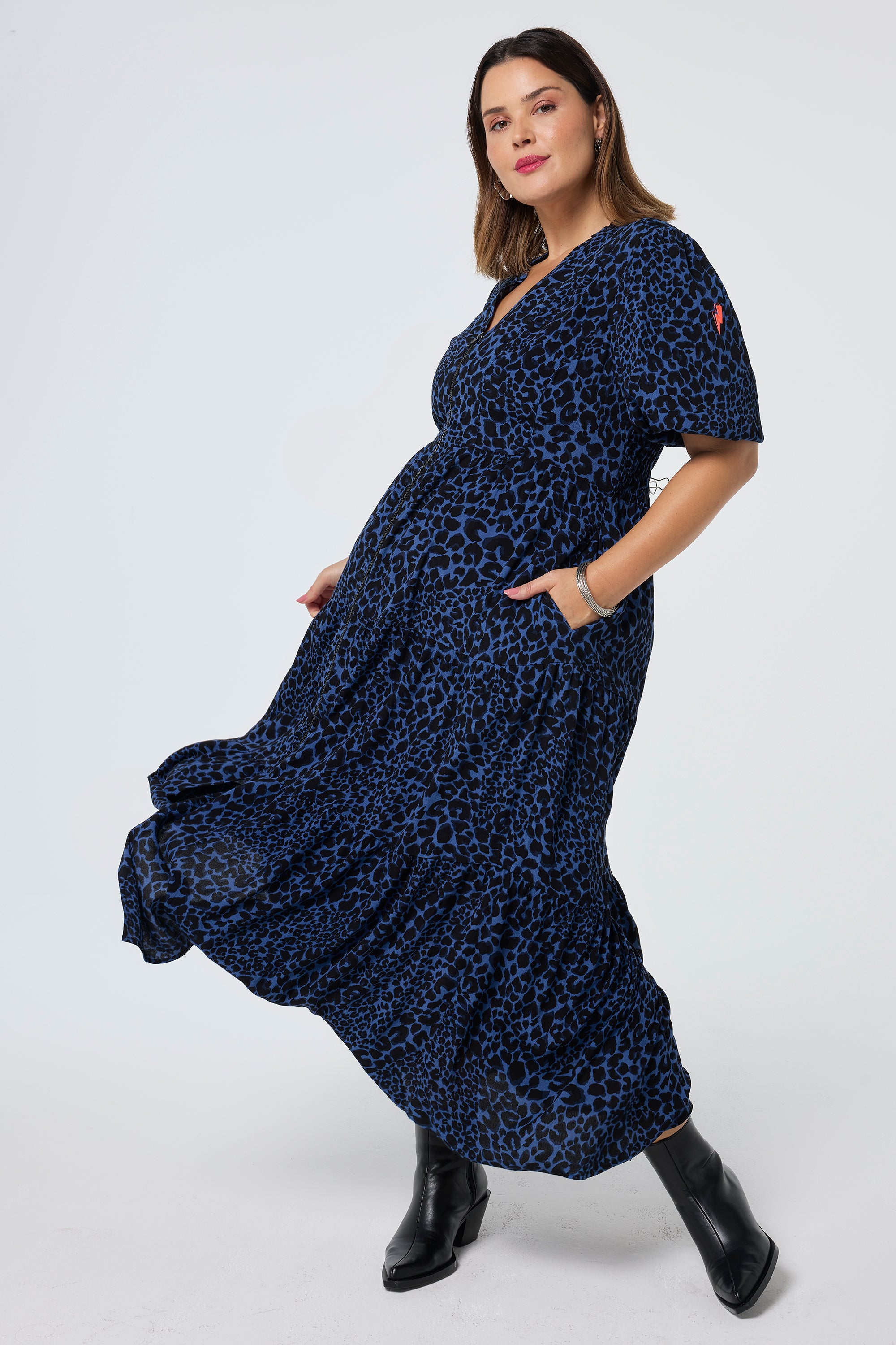 Navy with Black Rock and Roll Zip Detail Tiered Midi Dress