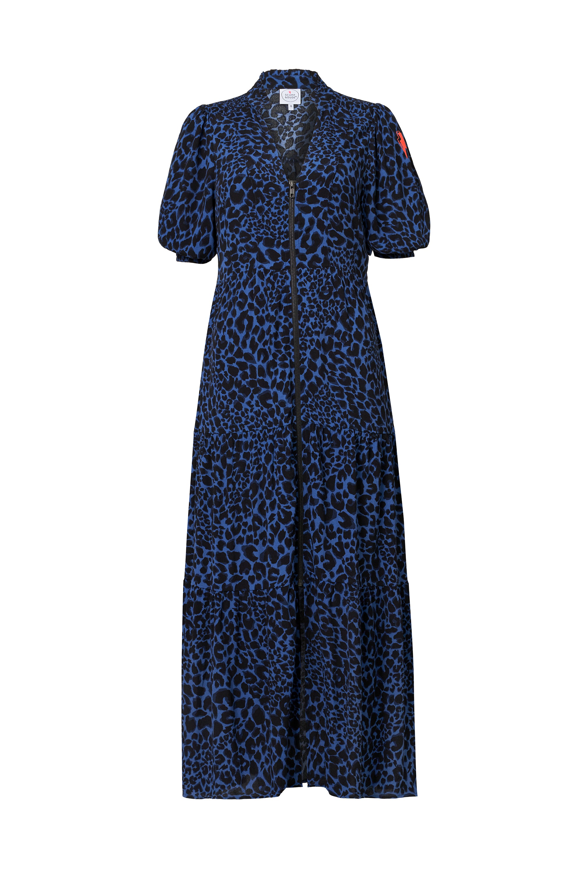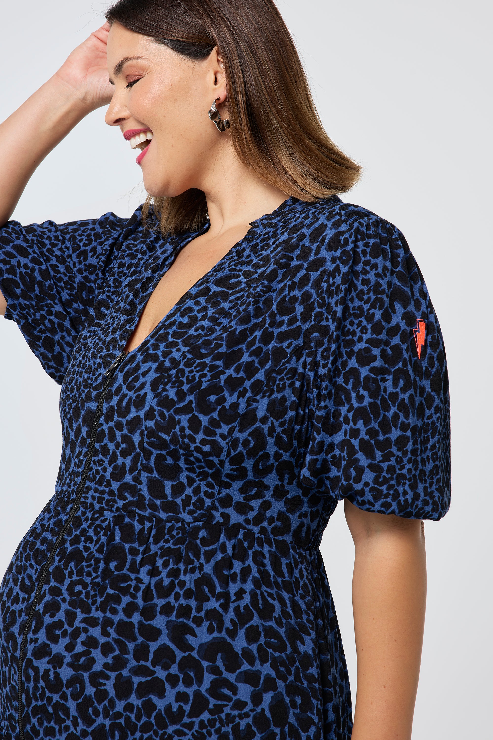 Crafted from soft viscose crepe this navy zip detail tiered midi dress is all about off-duty charm. It's crafted with romantic short blouson sleeves, a smart v-neckline and a contrast zip fastening. For a flattering silhouette, the piece is elasticated around the waist while the midi length skirt fall in tiers in a flattering fit and flare style.