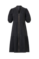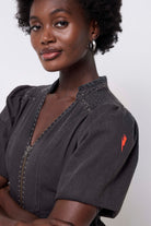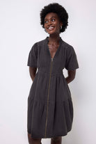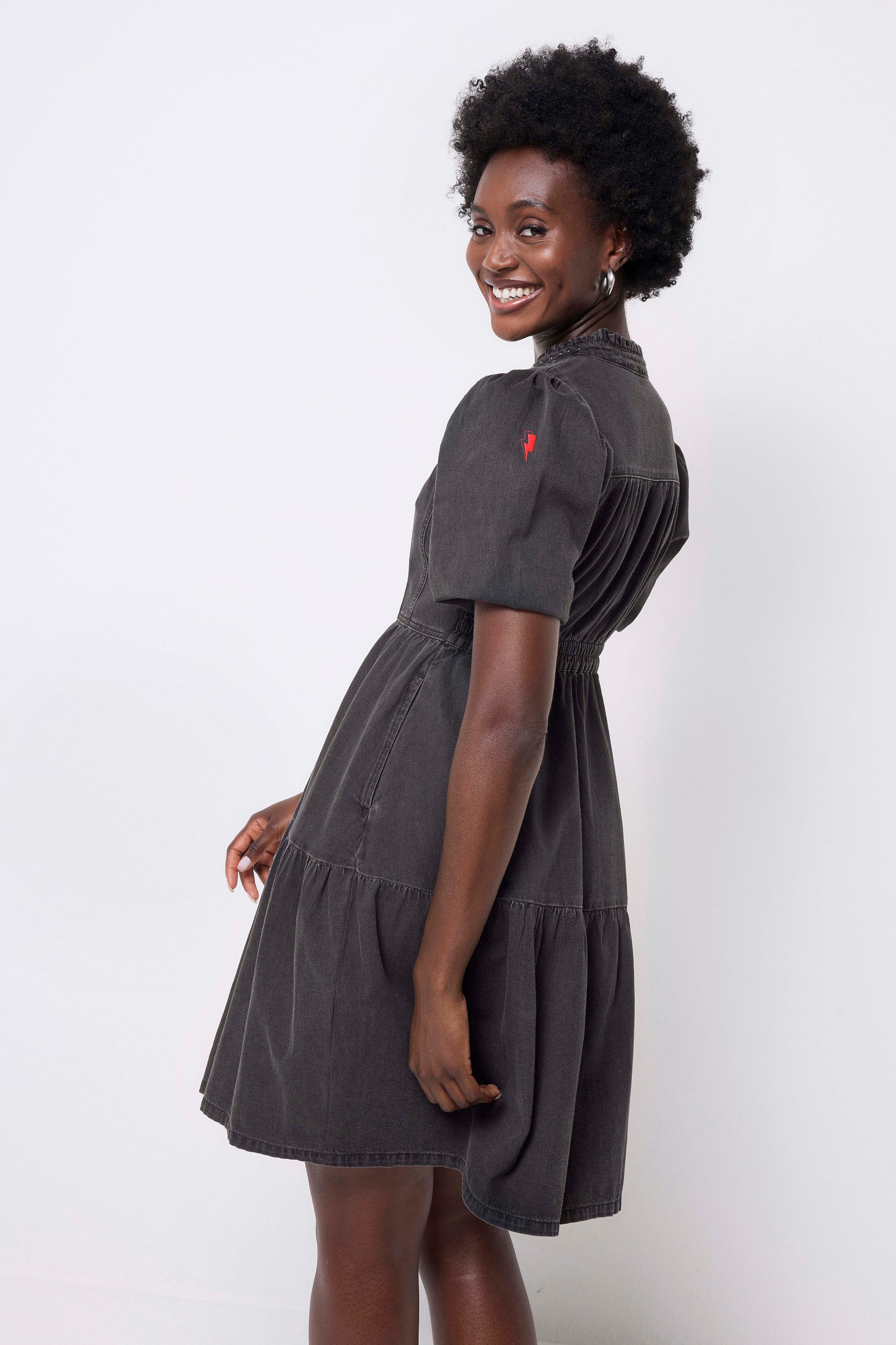 Crafted from responsibly sourced cotton this washed black zip detail tiered short dress is all about off-duty charm. It's crafted in denim, complete with romantic short puff sleeve sleeves, a smart v-neckline and a contrast zip fastening. For a flattering silhouette, the piece is elasticated around the waist while the short length skirt fall in tiers in a flattering fit and flare style.