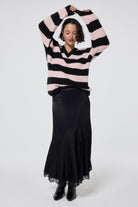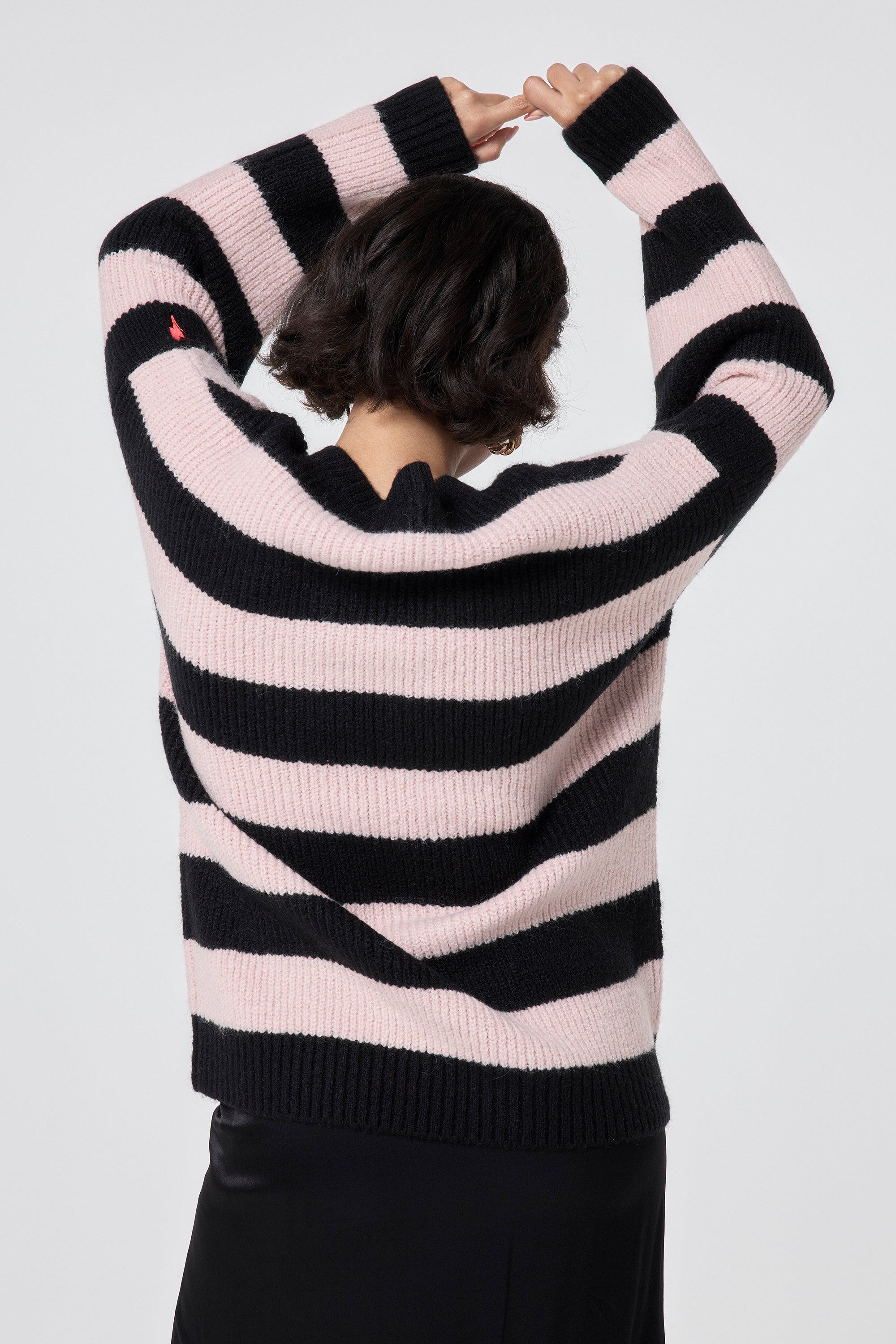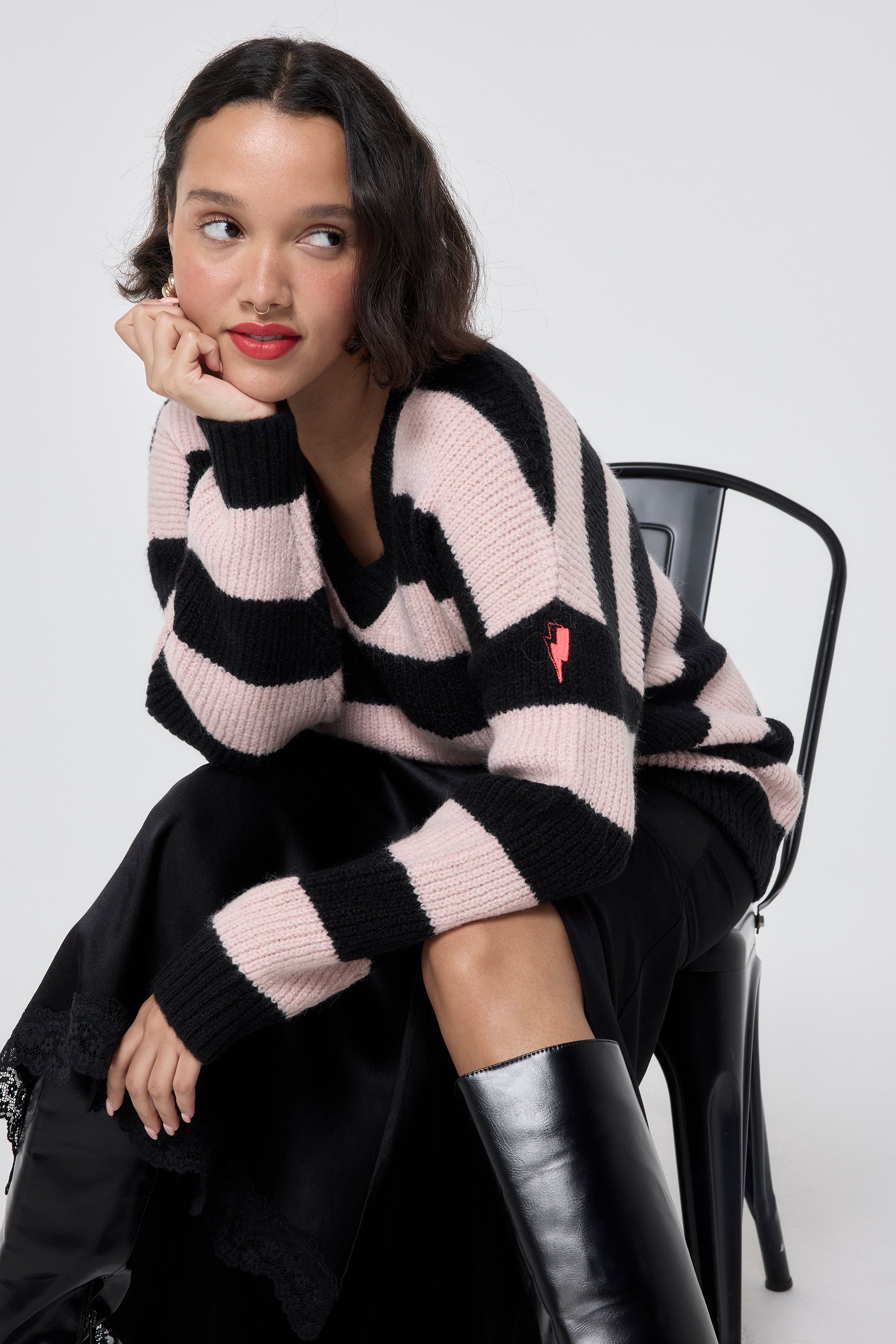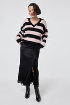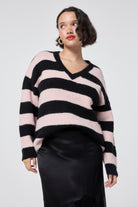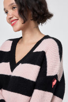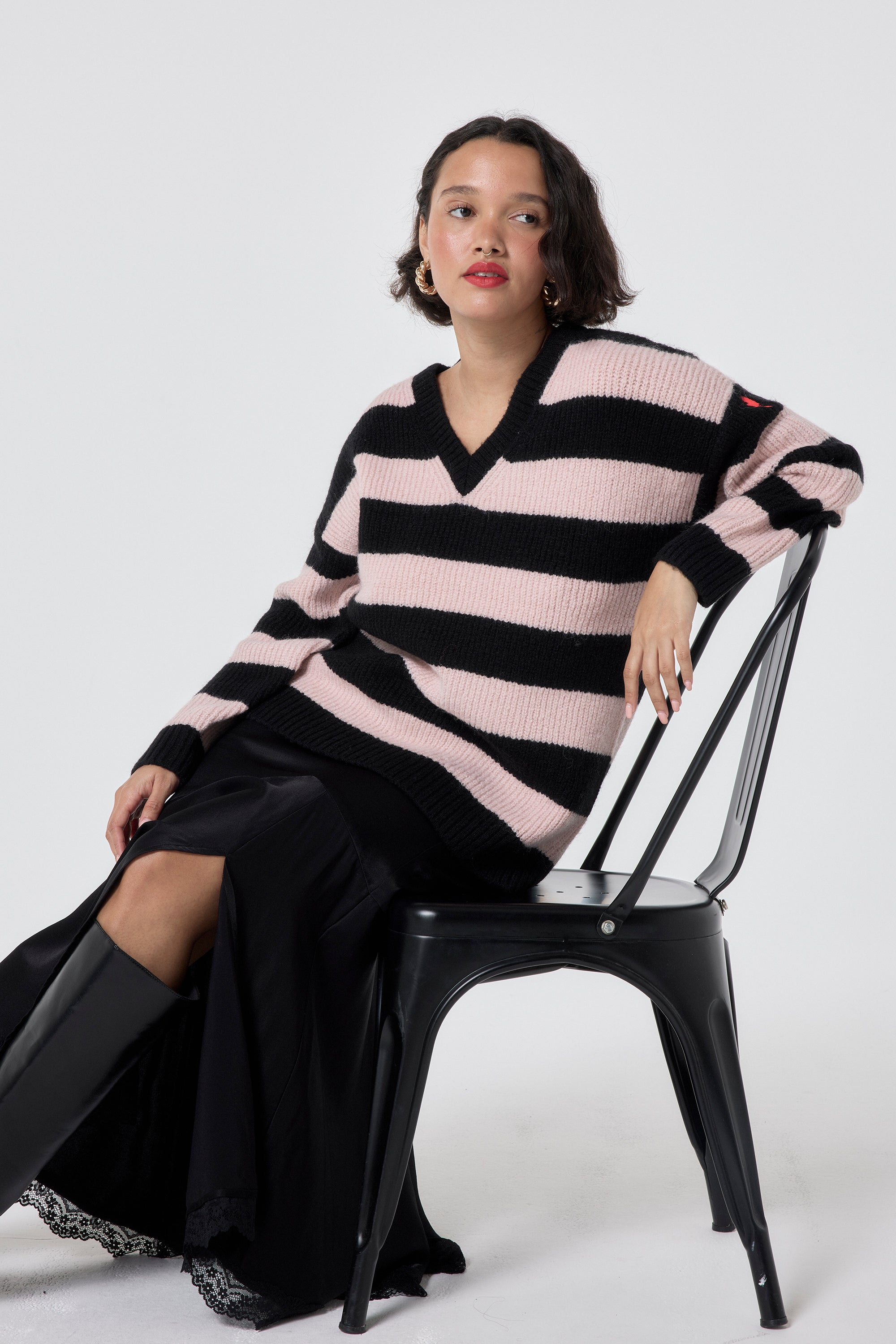 Black and Blush Pink Stripe V Neck Knit Jumper