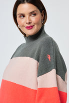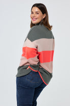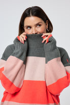 Our multi colour striped oversized turtleneck jumper is super-soft and snuggly. Easily styled with a maxi skirt or jeans, it's guaranteed to make chilly walks and pub lunches even more of a joy.
