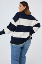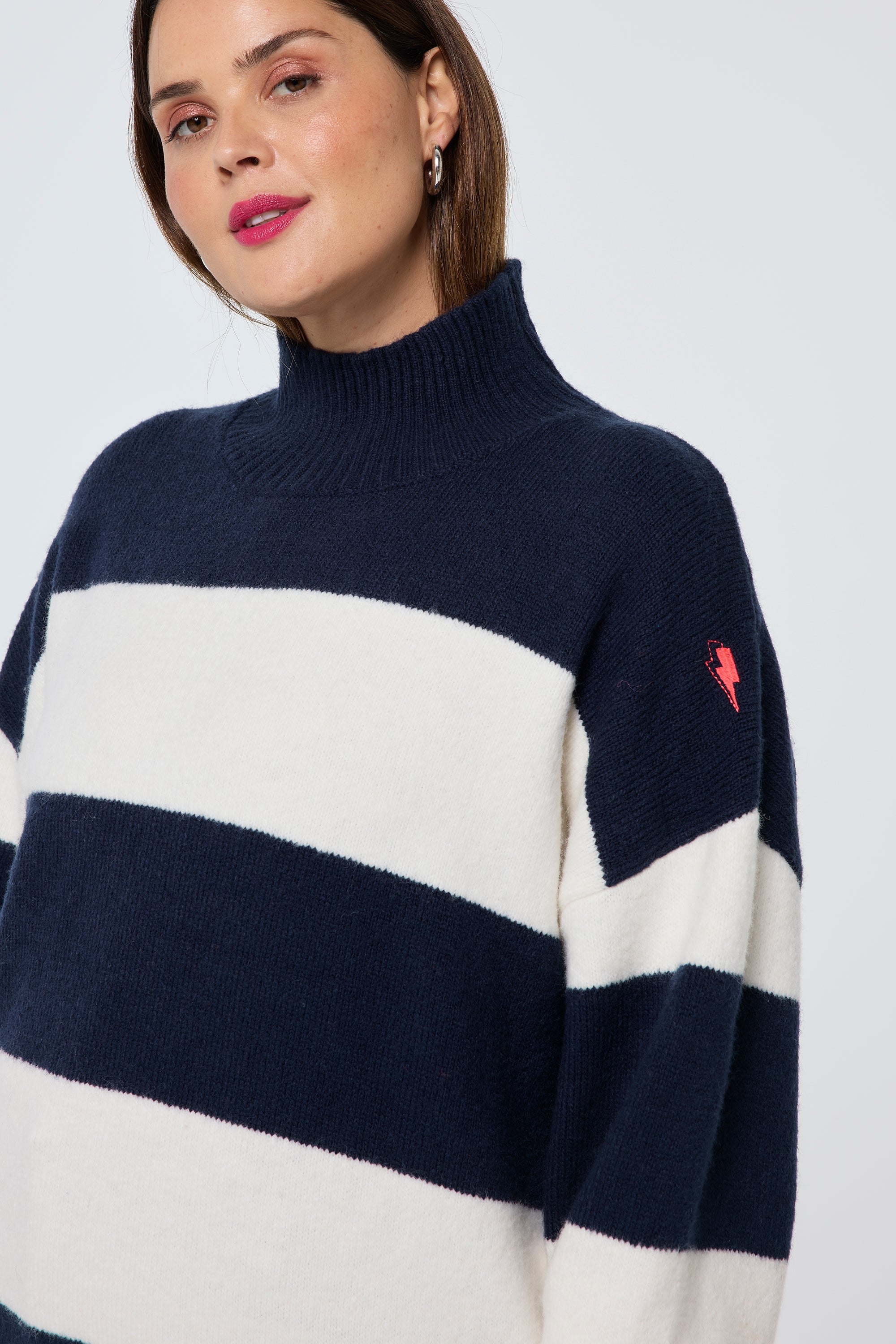 Navy with Ivory Stripe Oversized Turtleneck Jumper