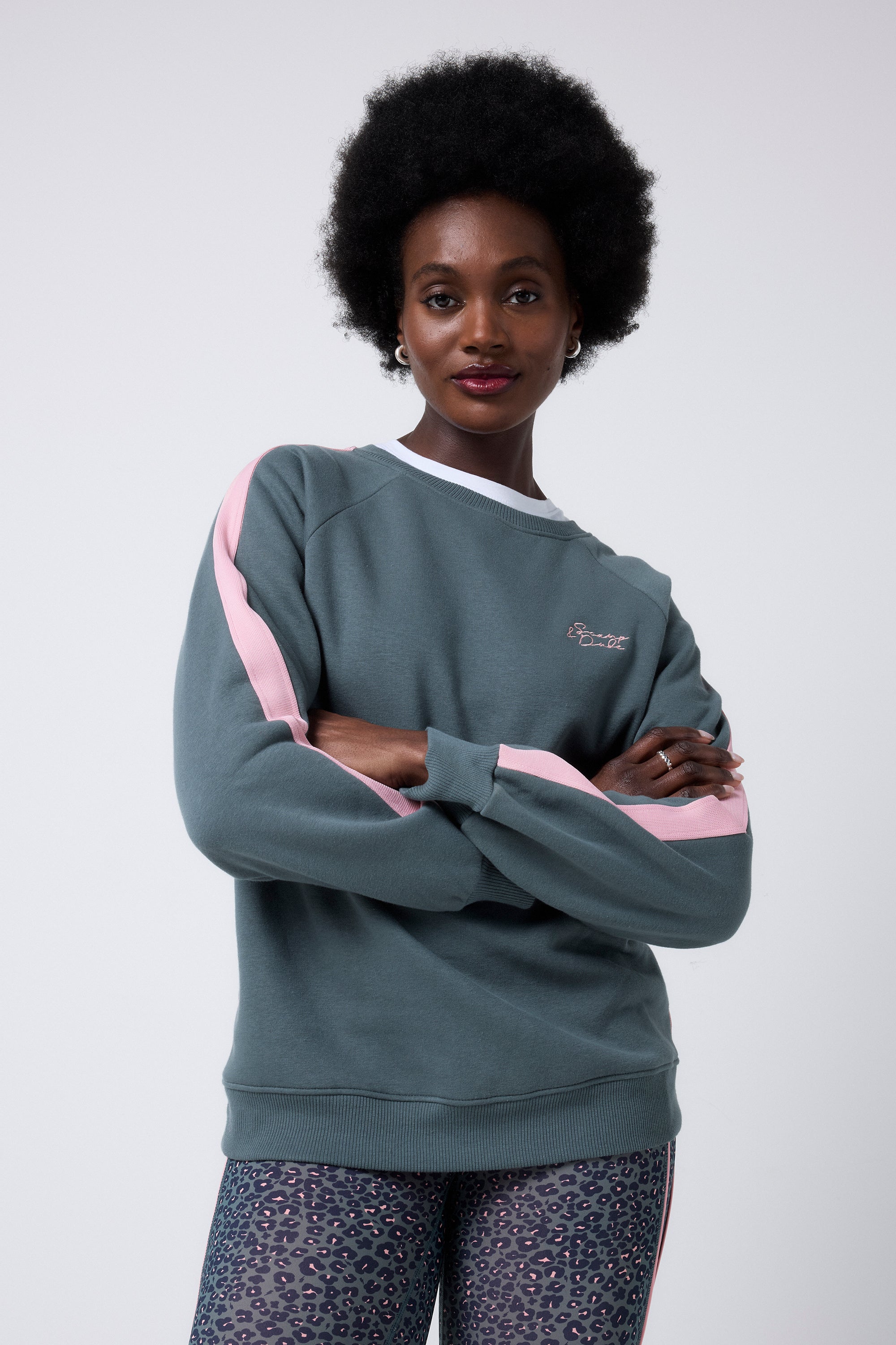 Amp up your casual collection with our khaki with pink colourblock relaxed sweatshirt. It's oversized fit makes it easy to layer, while the raglan sleeve adds to the relaxed feel.