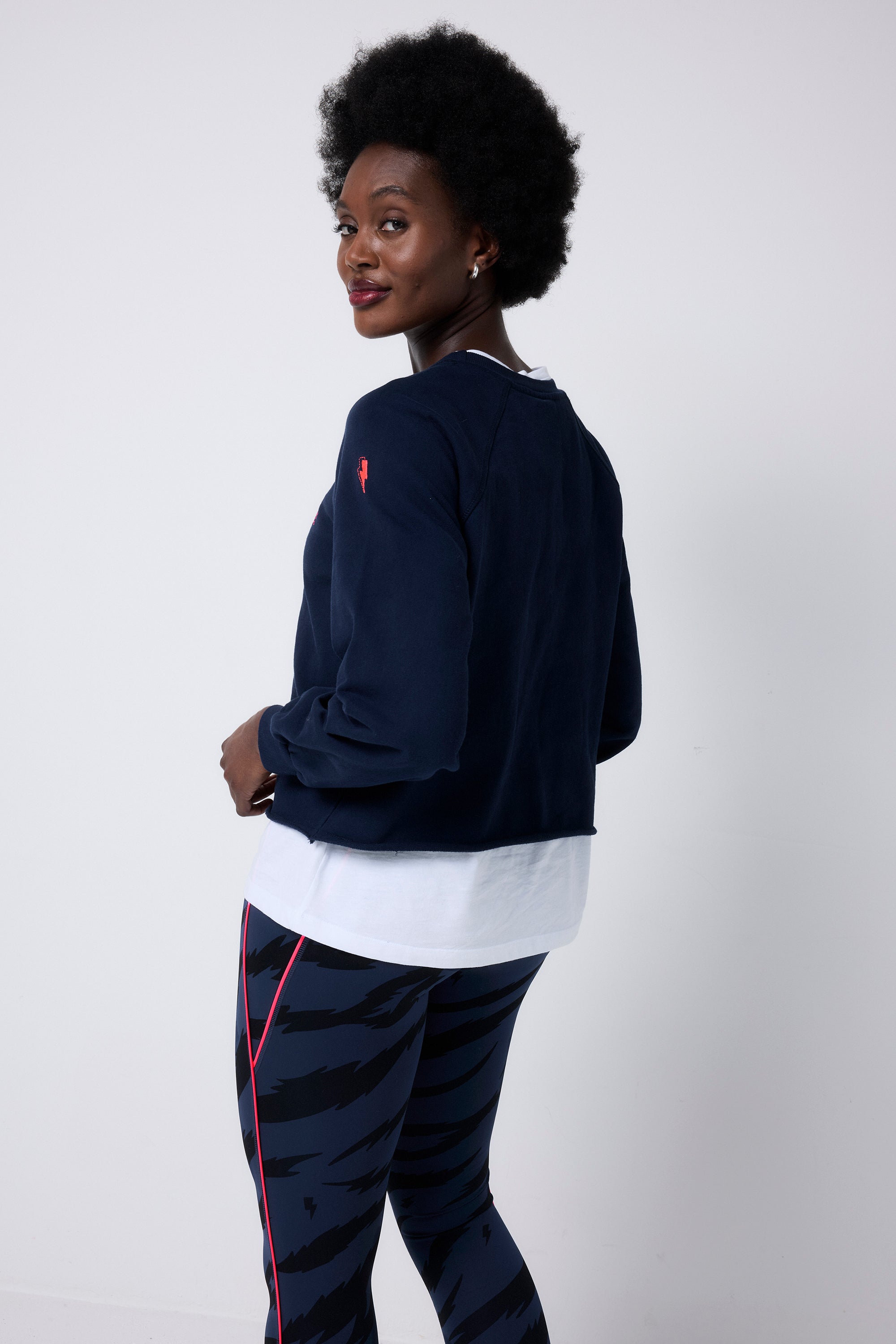 Amp up your casual collection with this washed navy cropped sweatshirt as we introduce our new lightweight jersey fabric. It's got all the comfort you need from our regular sweatshirts, but with a bit more drape for a laidback look.