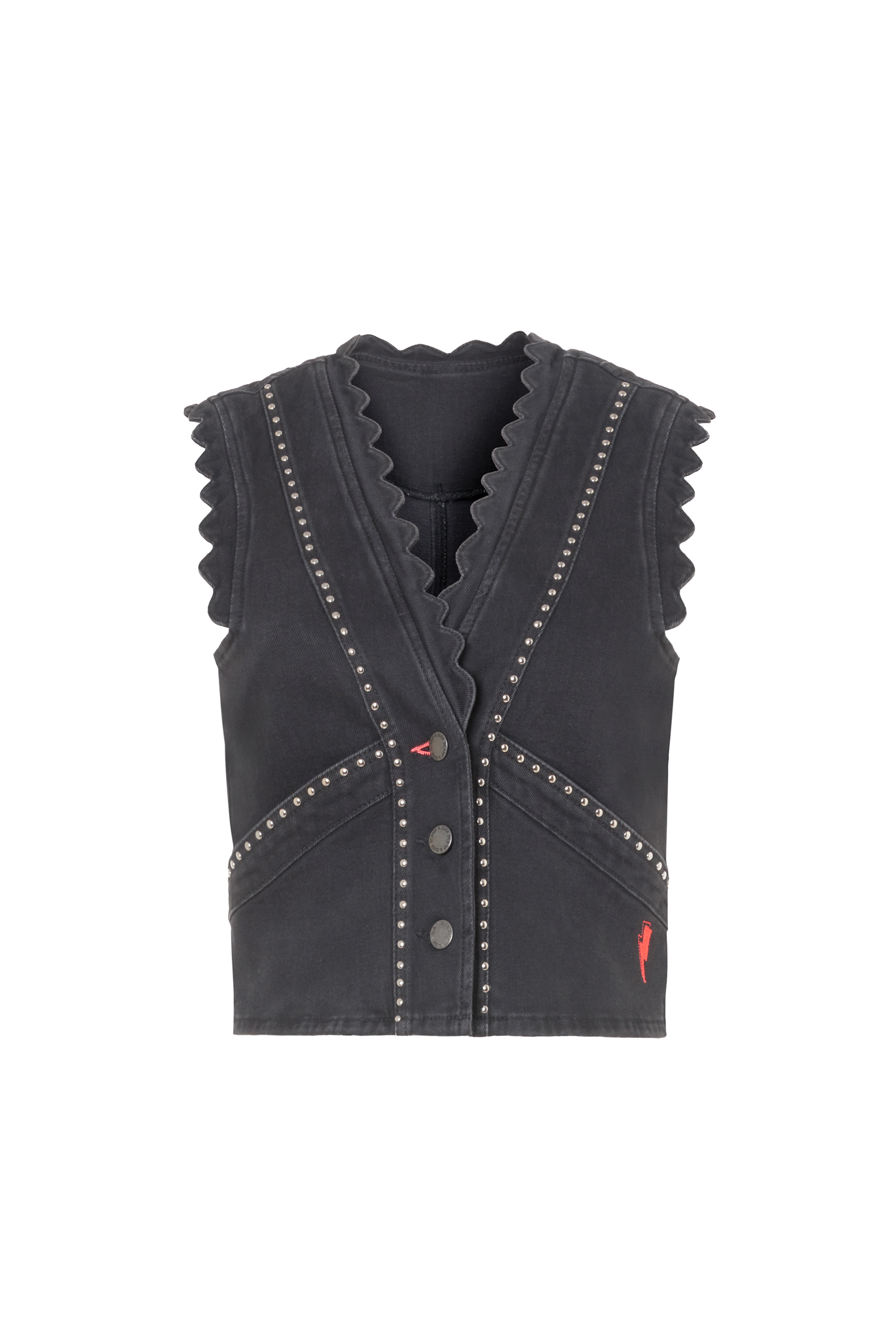 Washed Black Studded Denim Scallop Waistcoat