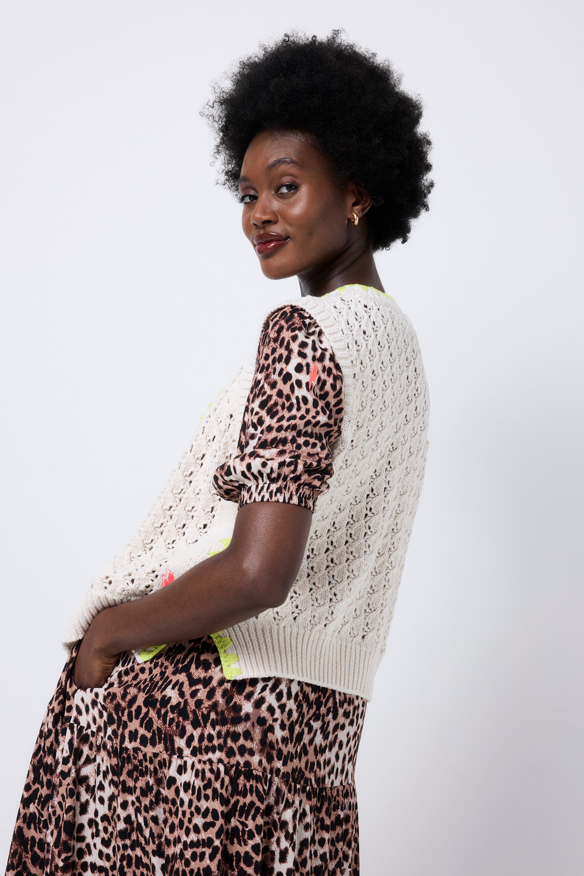 Cream with Neon Yellow Knitted Crochet Waistcoat