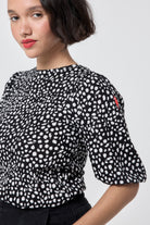 Make a statement in our black with white cheetah and lightning bolt puff sleeve T-shirt. Complete with a crew-neckline and feminine puff sleeves with an elasticated cuff, this comfortable piece will be the perfect addition to your wardrobe. We'll be pairing ours with dark denim and trainers for a casual yet stylish outfit.
