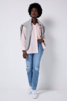 - Signature neon pink embroidered lightning bolt on the sleeve