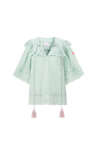 Crafted from oh-so soft, lightweight cotton in pistachio green, this charming blouse is a new classic, ready to go with everything from shorts, to jeans and midi skirts. Boho is back, everyone.