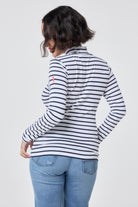 Ivory with Navy Stripe Long Sleeve Polo Top