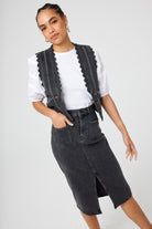 Washed Black Studded Denim Scallop Waistcoat