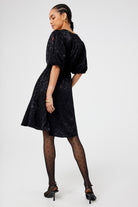 Black Jacquard Leopard Puff Sleeve Short Tea Dress