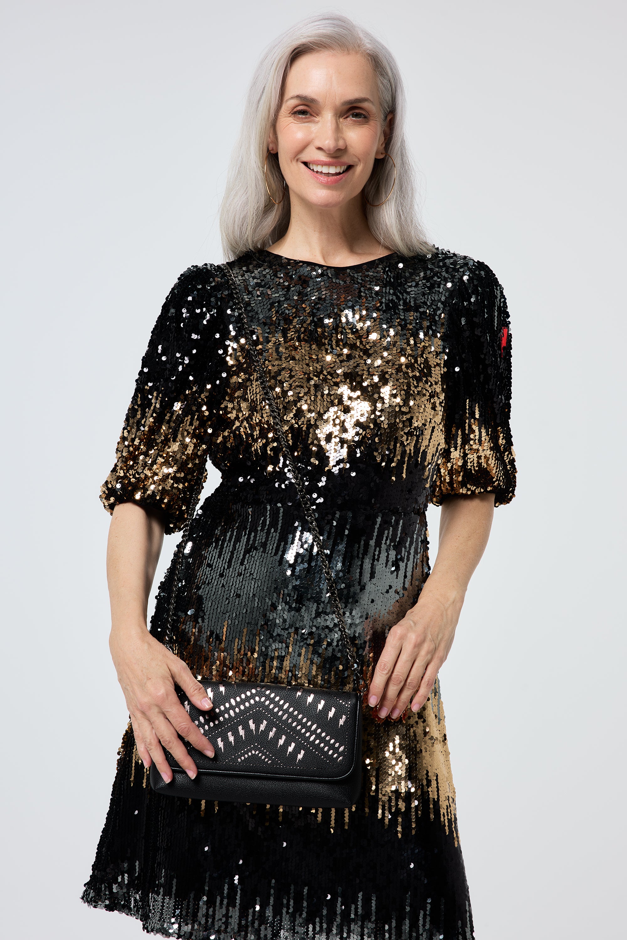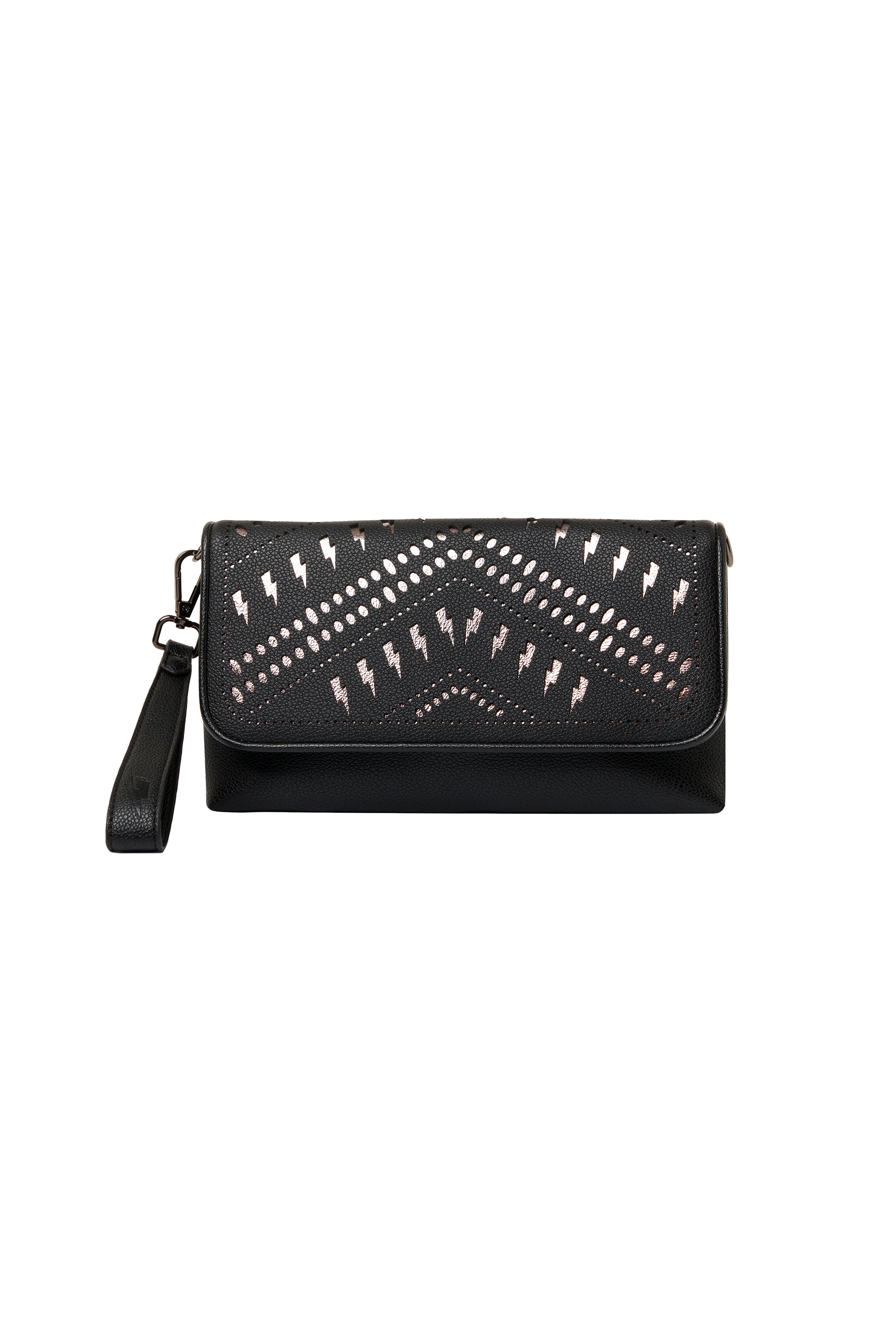 - Black Clutch Bag with Laser Cut Lightning Bolt Design
