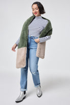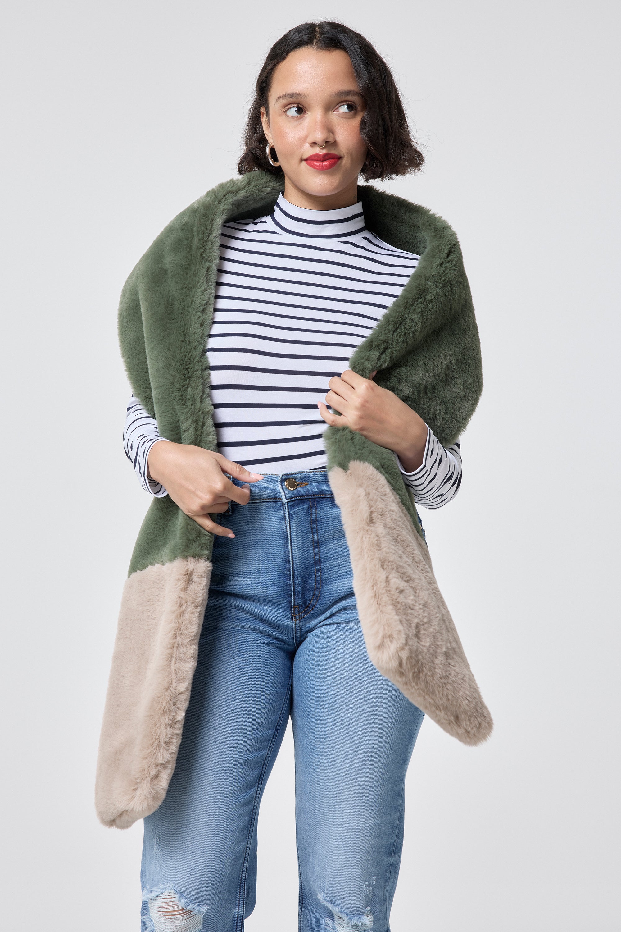 Khaki and Taupe Colour Block Faux Fur Scarf