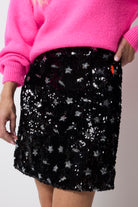 Shine bright in our sparkling black with silver star sequin mini skirt. With all-over twinkling sequins, it is sure to have you dancefloor ready.