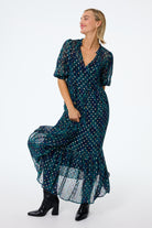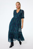 Team our midnight with teal snake print chiffon maxi dress with a cross body bag and heels for an effortless occasionwear look. This gorgeous tiered dress will catch everyone's eye.