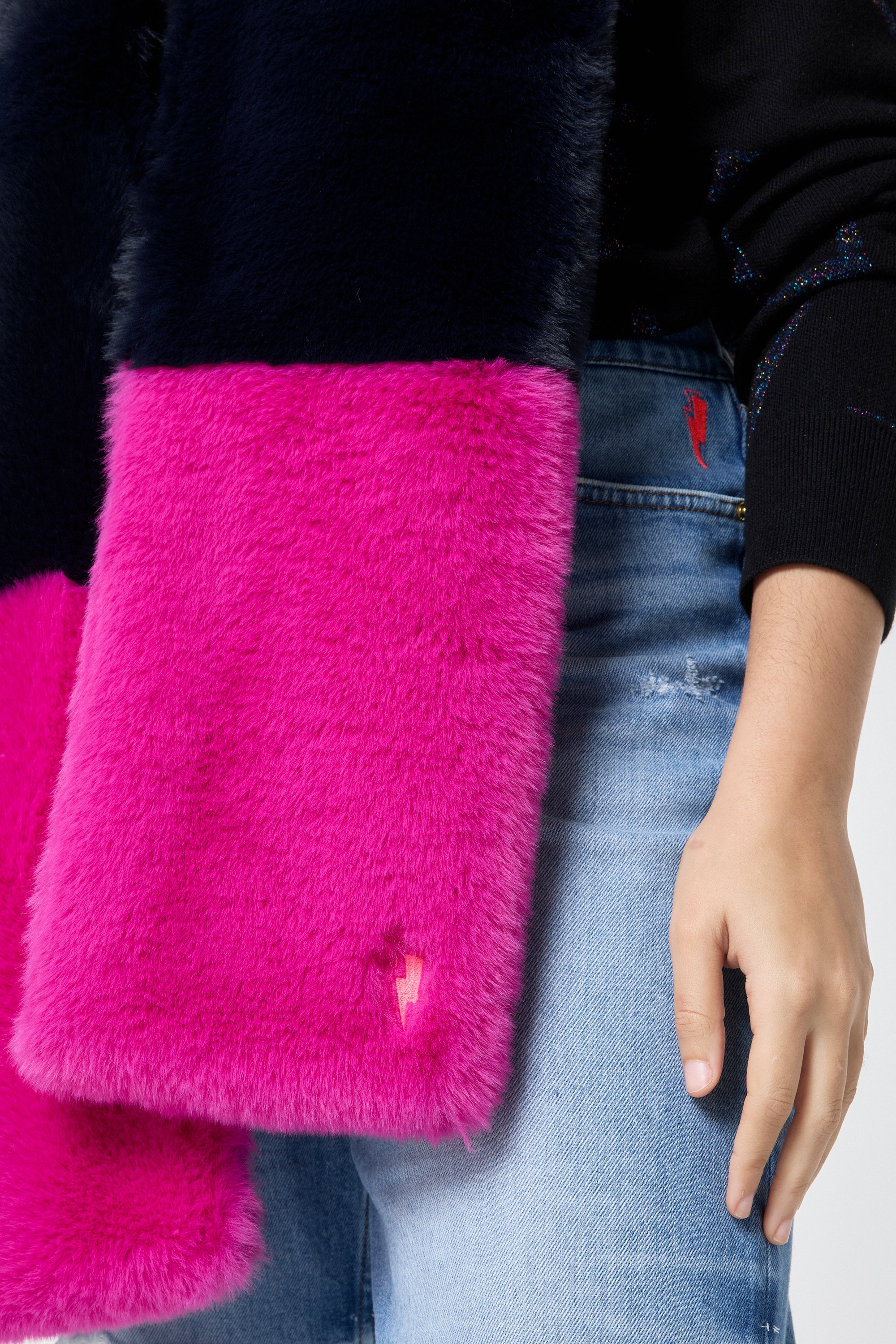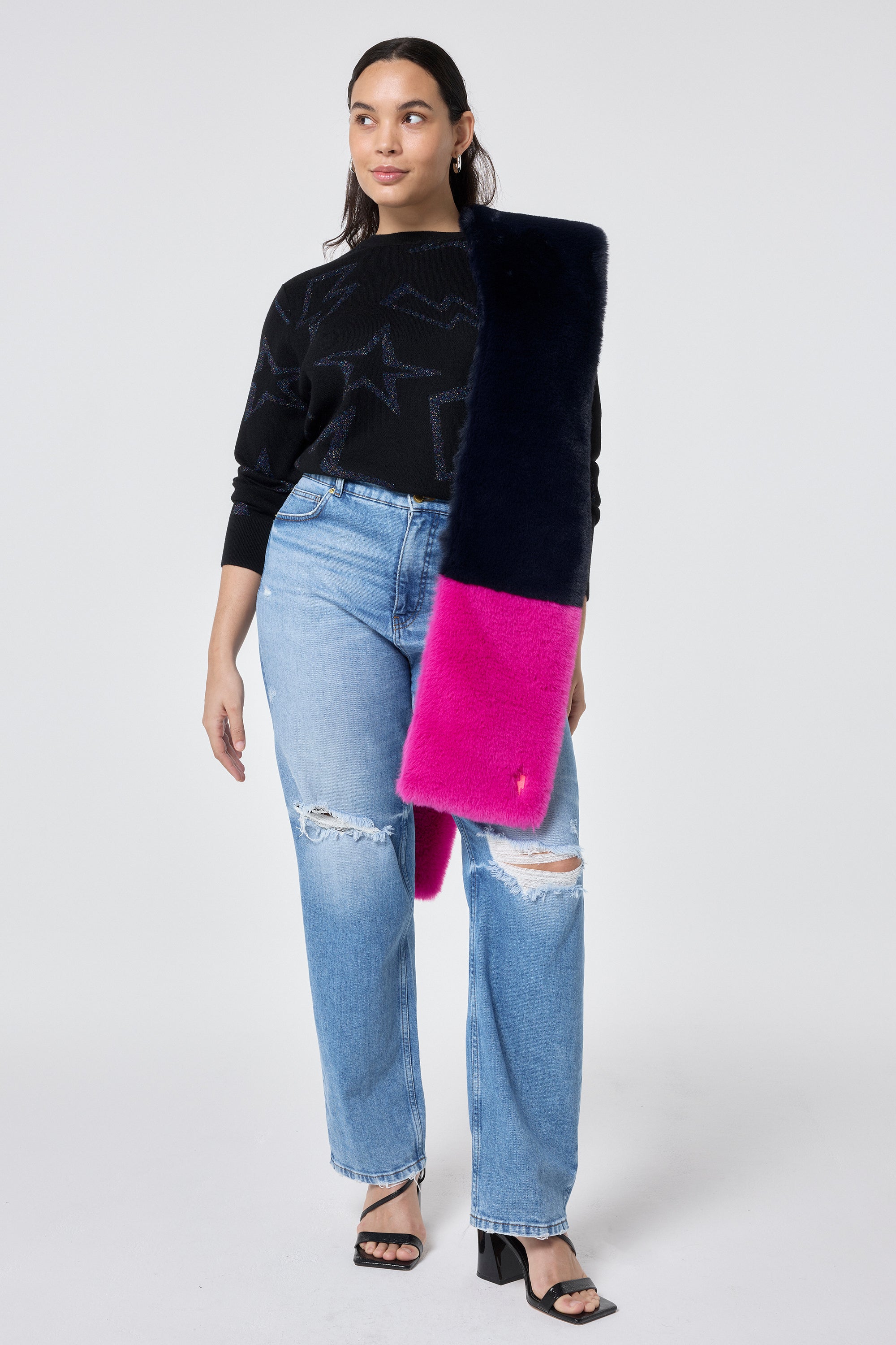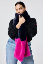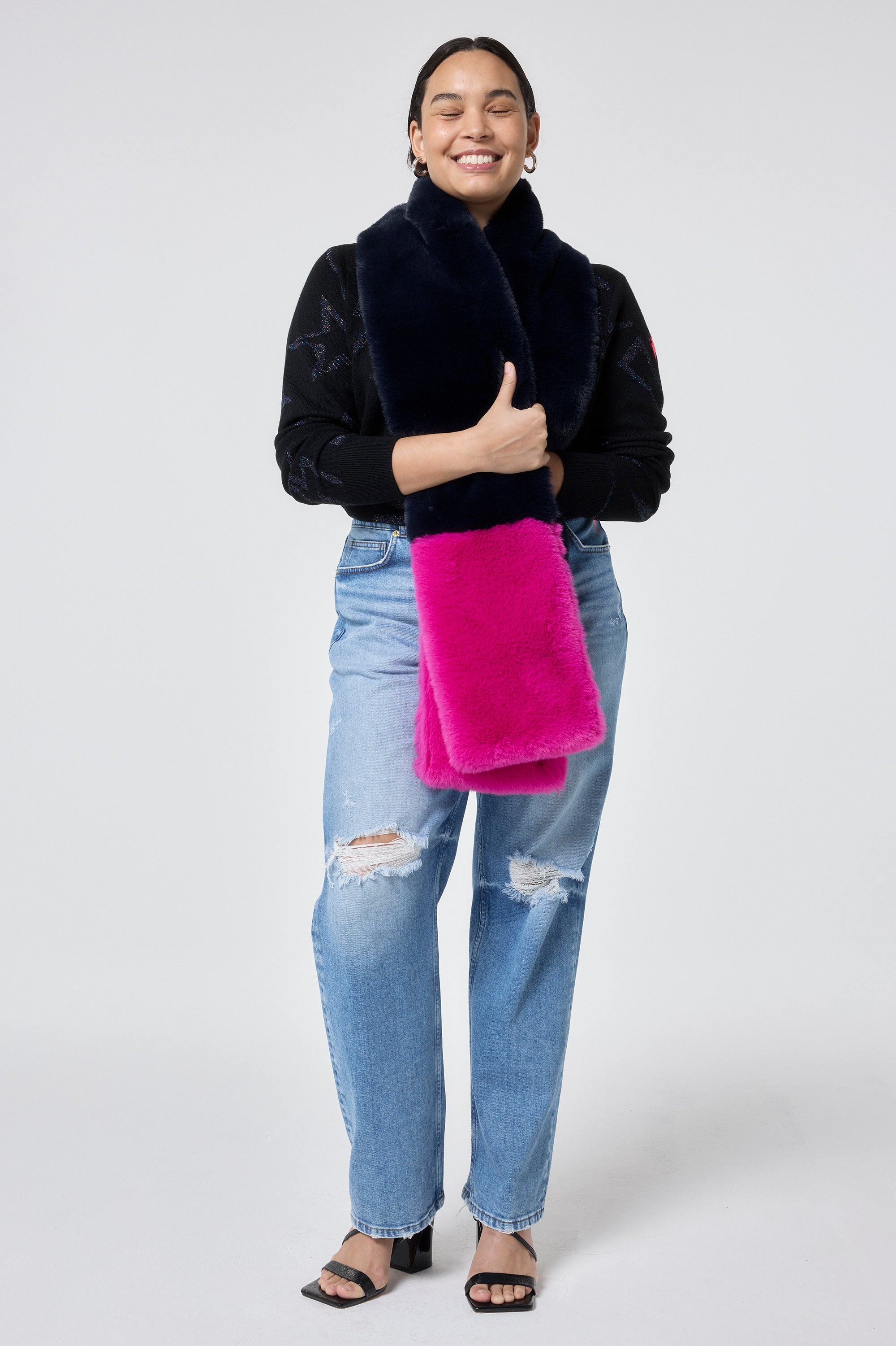 Wrap up warm in chilly weather with this super-soft pink and navy faux fur scarf. Wrap it around a sweatshirt with a puffer coat. It's oh-so-cosy.