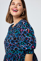 Our teal maxi dress with rainbow shadow leopard and lightning bolt print is a flattering and versatile style and is perfect for nailing your weekday and off-duty look at the switch of your shoes.