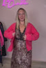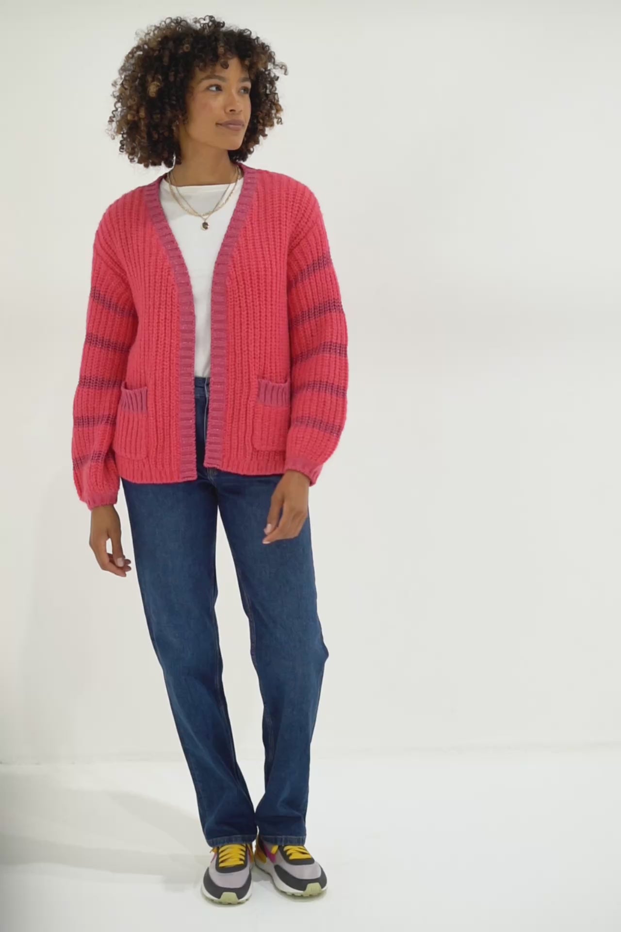 Coral with Pink Lurex Stripe Edge to Edge Cardigan