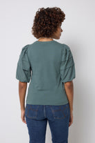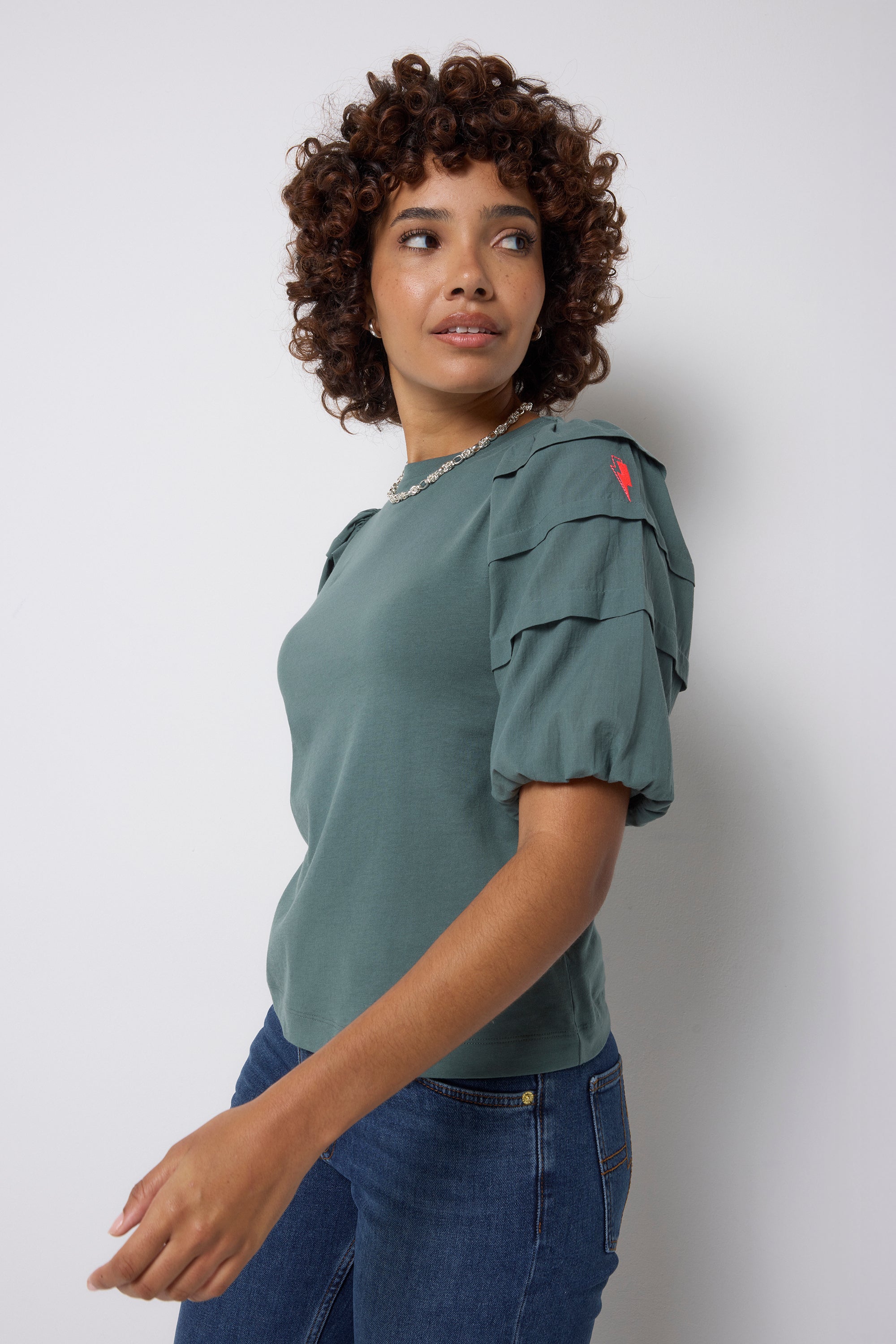 Top in soft jersey mixed with lightweight woven fabric sleeves