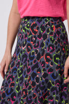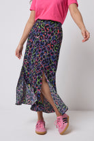 Our grey with rainbow shadow leopard and lightning bolt print split front skirt is a statement making pick that can be amped up for special occasions or pared back with a chunky knit and boots. It's designed with an elasticated waist on the back for easy comfort.