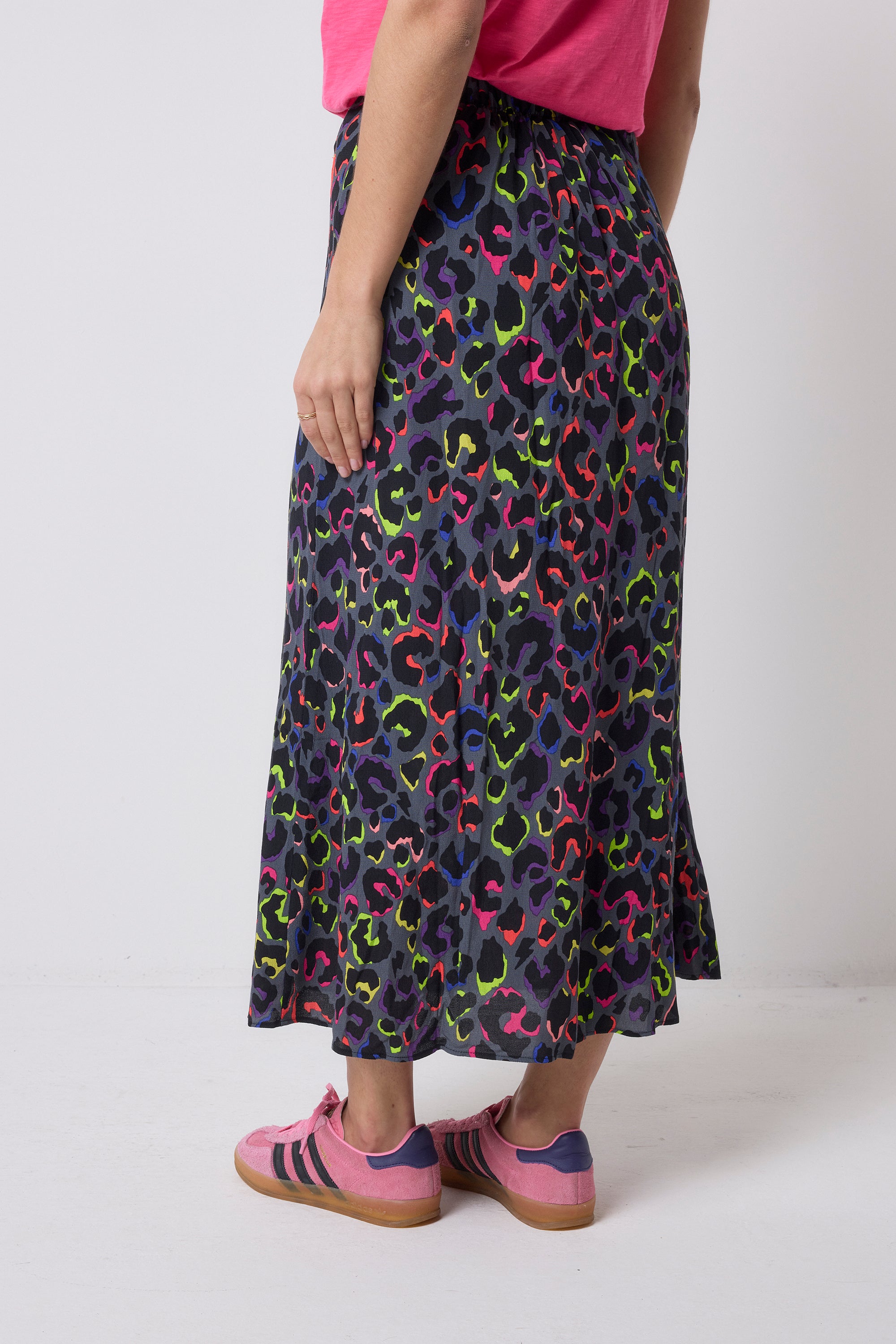 Grey with Rainbow Shadow Leopard Split Front Skirt