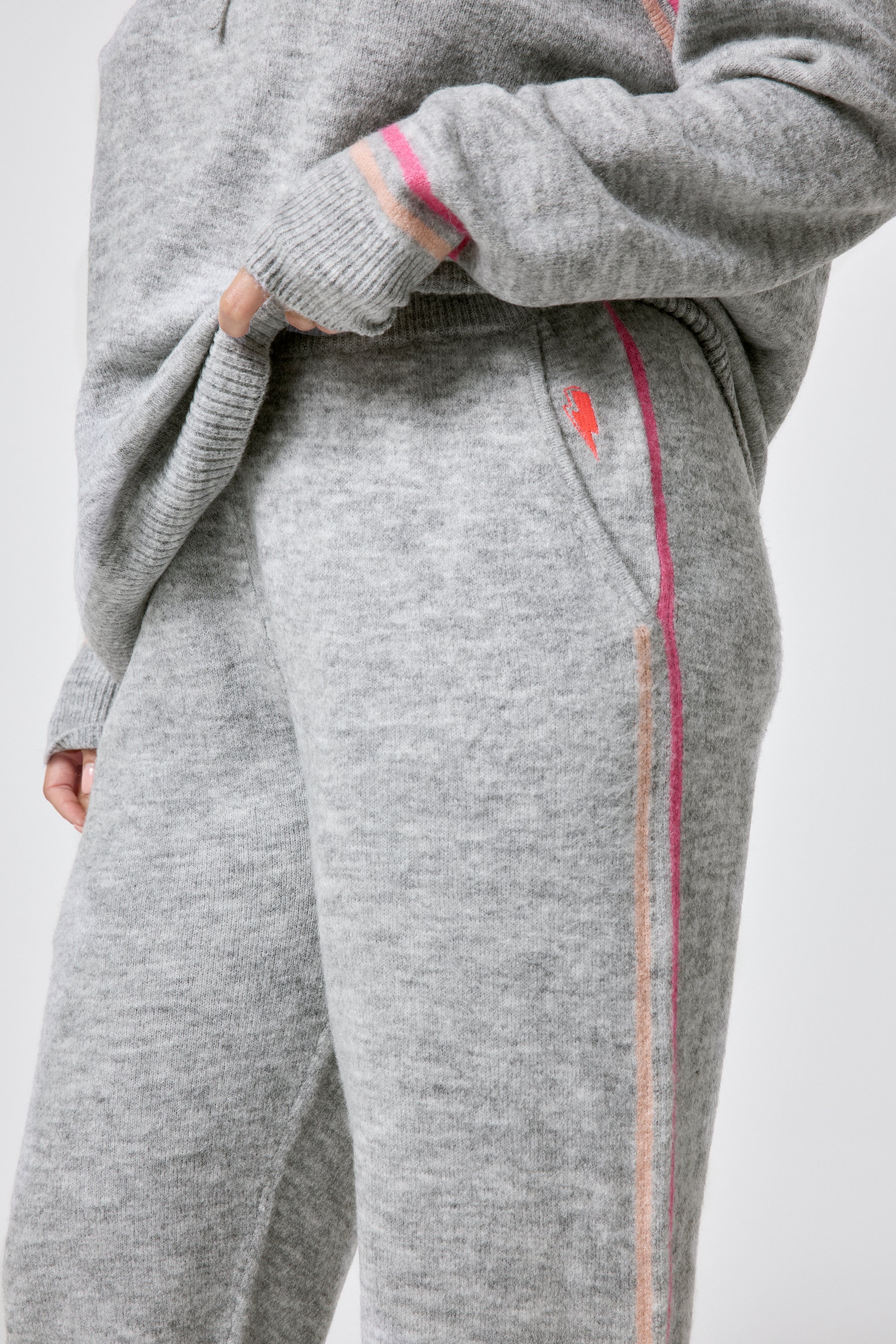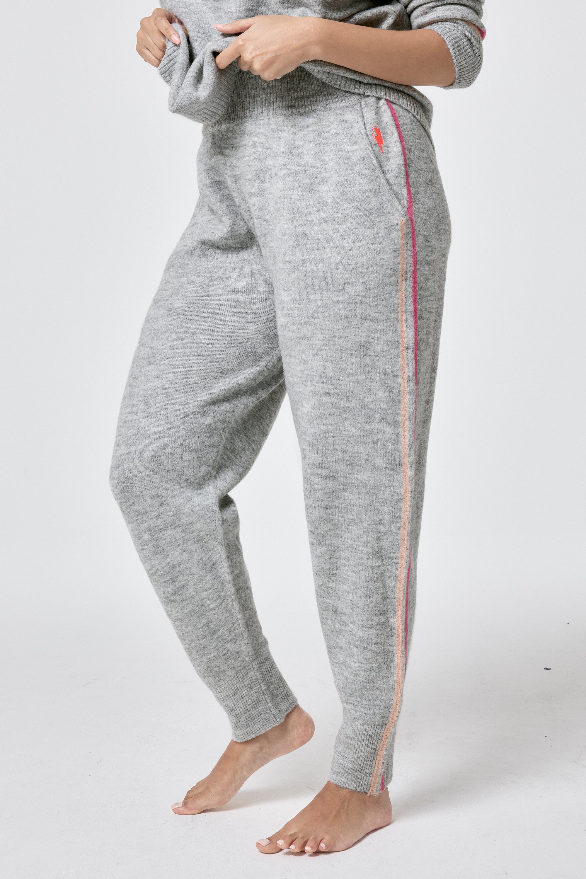 Grey with Peach and Pink Stripe Knitted Lounge Wear Joggers