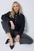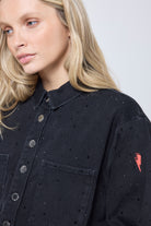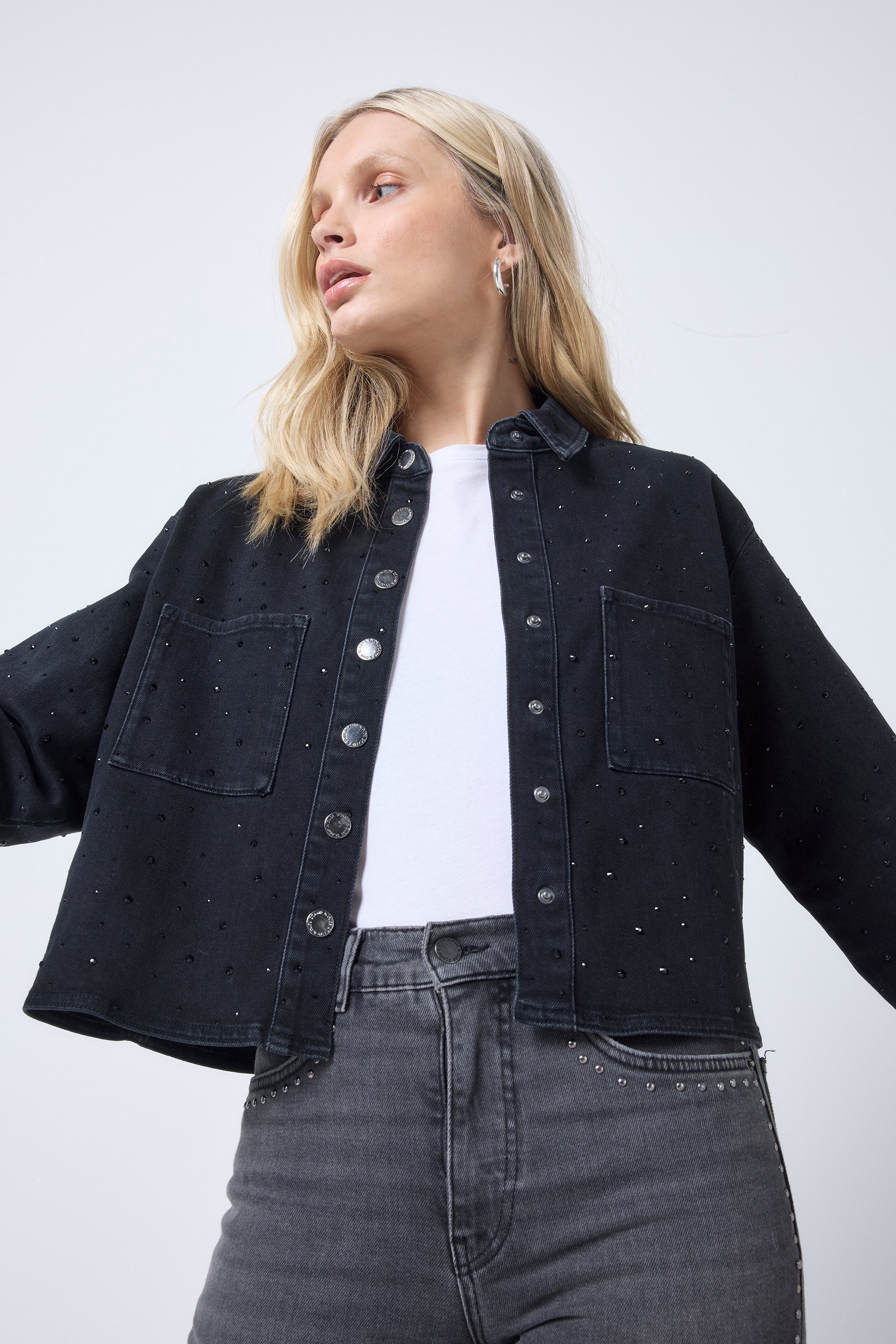 It’s always denim season to us. Throw your new favourite black embellished denim shacket on with printed dresses or the matching skirt.