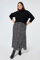Black with White Cheetah Side Split Skirt