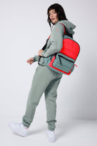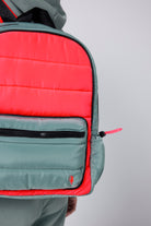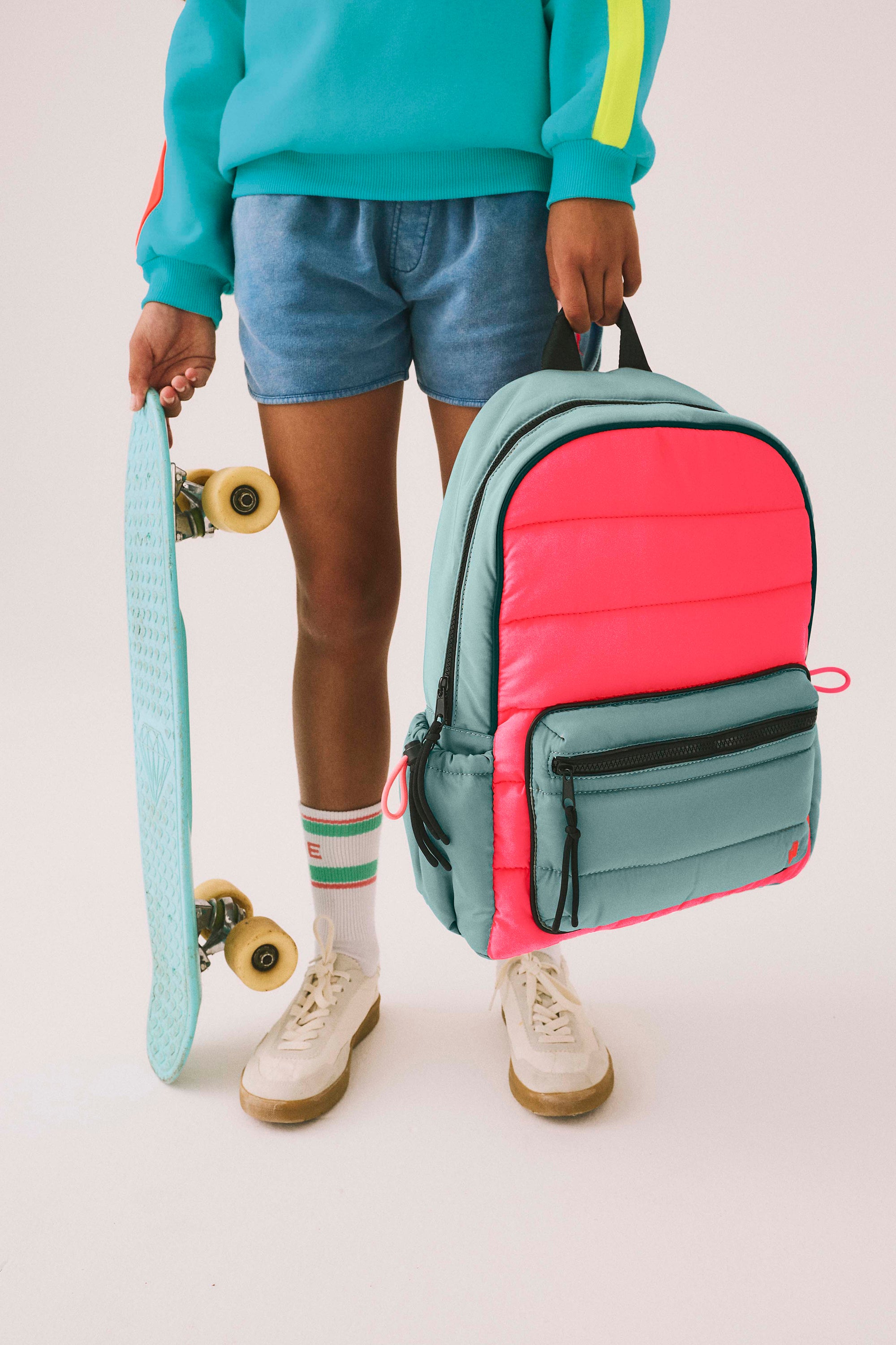 Combining fashion with functionality, our khaki with neon coral backpack is designed with adults and bigger kids in mind. It comfortably fits a laptop and also kids A4 school books/folders.
