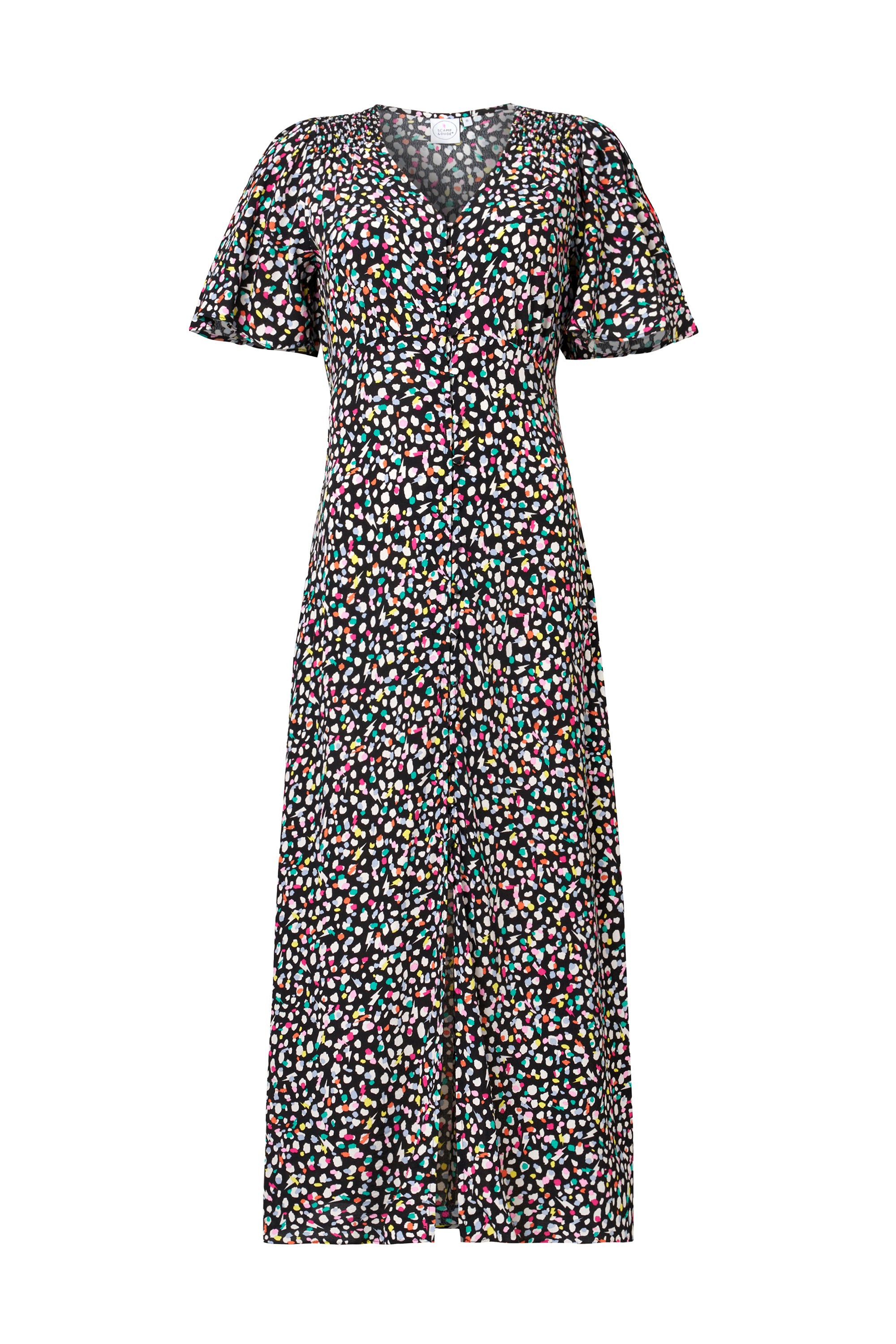 Black with Rainbow Confetti Angel Sleeve Midi Tea Dress