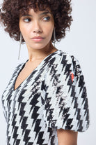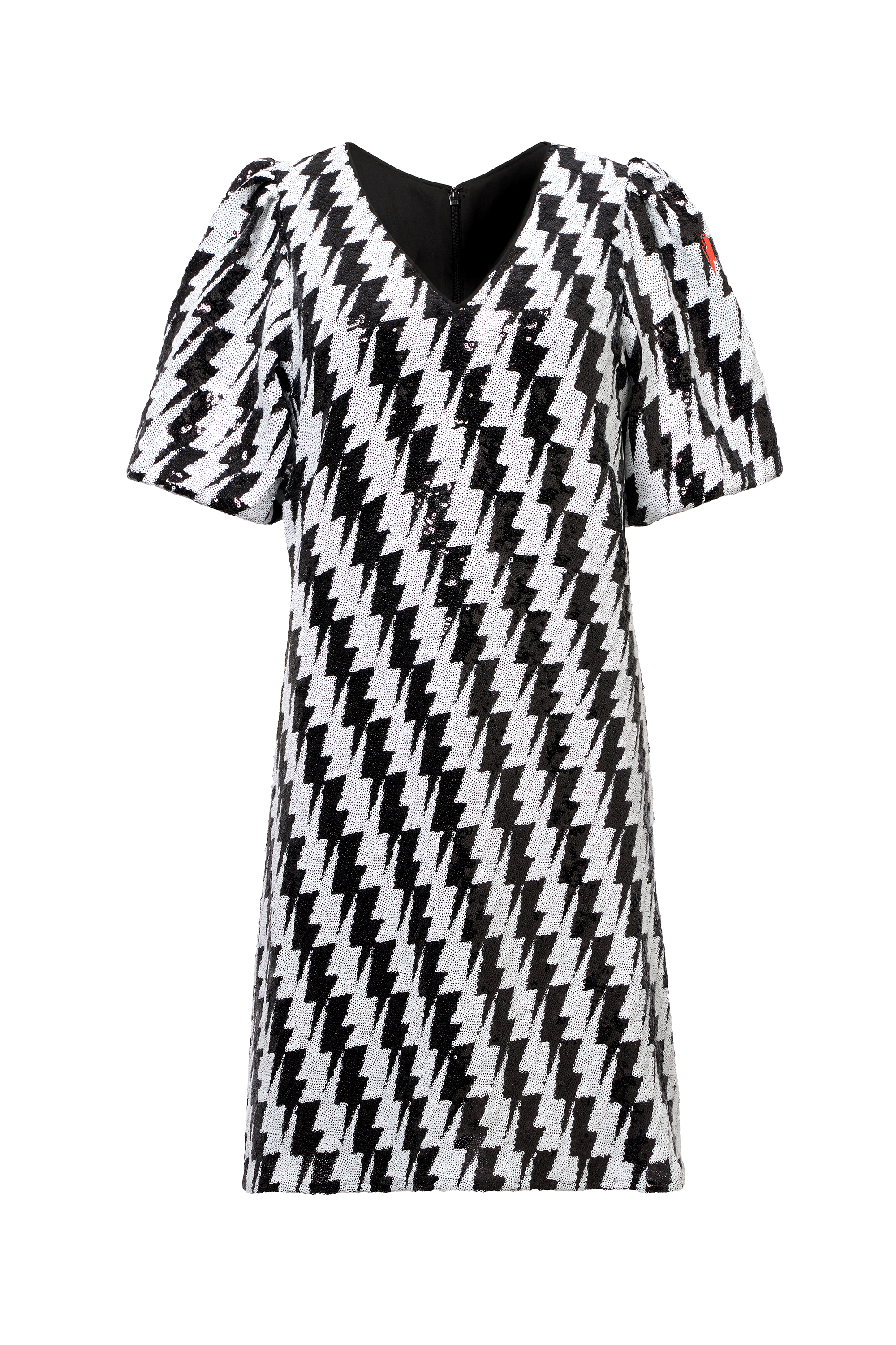 Black with White Lightning Bolt Sequin V-Neck Short Dress