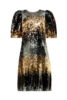 Copper Ombre Sequin Puff Sleeve Short Dress