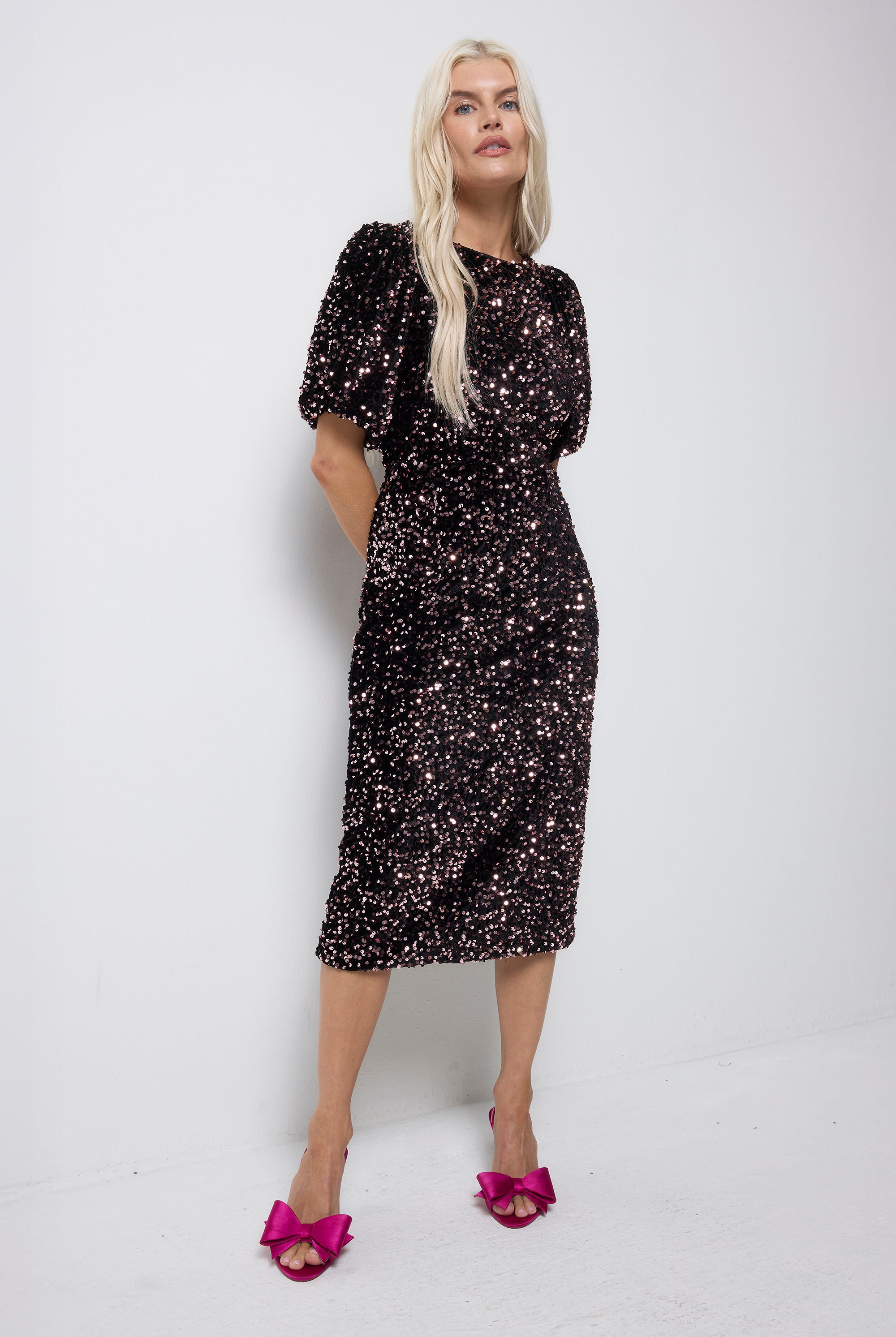 Step into the spotlight with our dazzling collection of sequin dresses, your ultimate choice for creating unforgettable moments. Whether you're looking for some serious occassionwear or planning a big night out with friends, our women's sequin dresses ensure you sparkle and shine. Opt for the timeless elegance of a sequin midi or embrace the bold allure of a glittering mini dress.