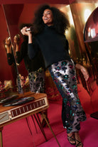Shine bright in our sparkling silver with rainbow leopard sequin midi skirt. With all-over twinkling sequins, it is sure to have you dancefloor ready.