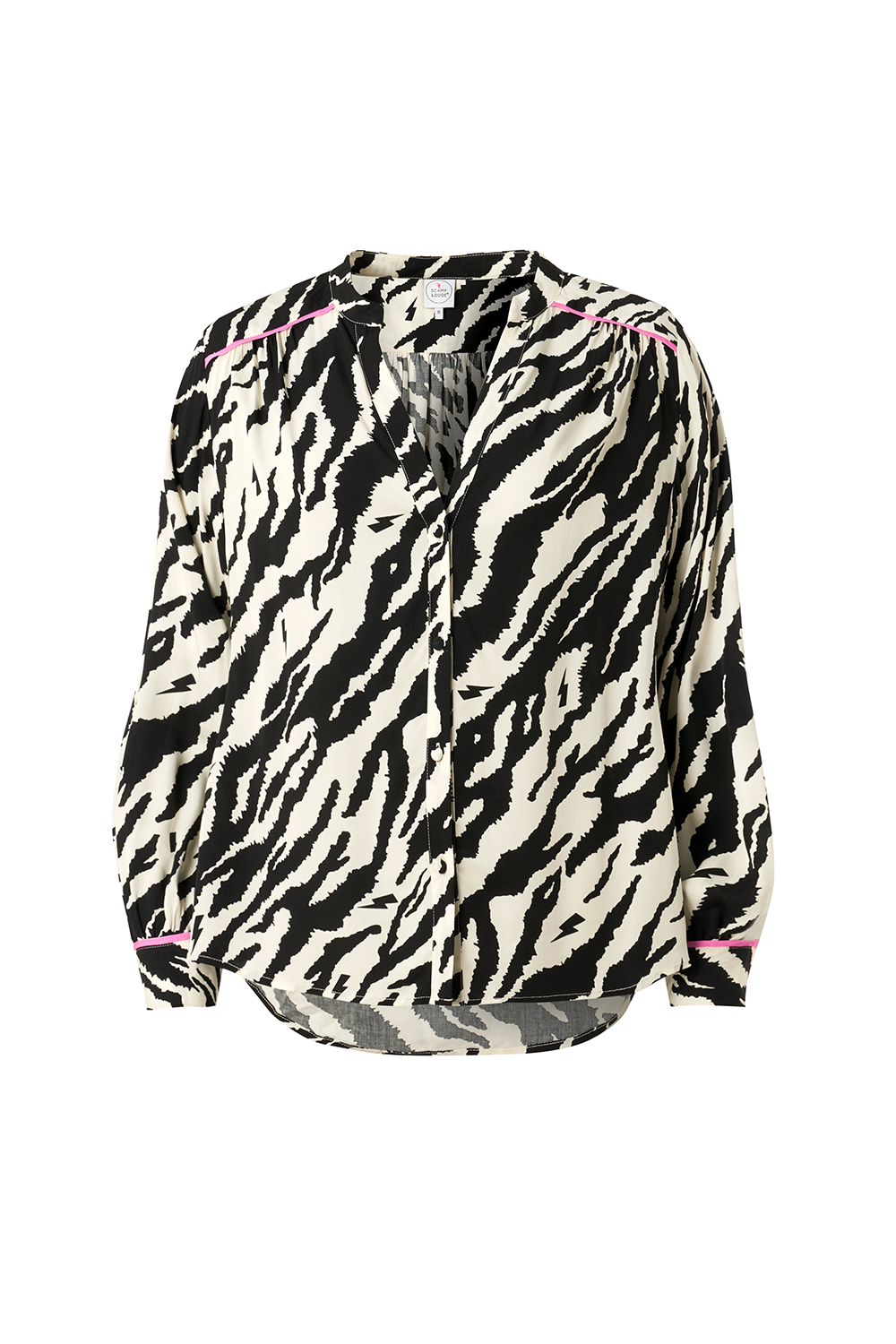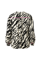 Pair our ivory with black shadow tiger and lightning bolt print collarless shirt with it's matching shorts for a complete casual and cool outfit, or mix and match the shirt with your existing wardrobe.