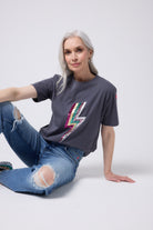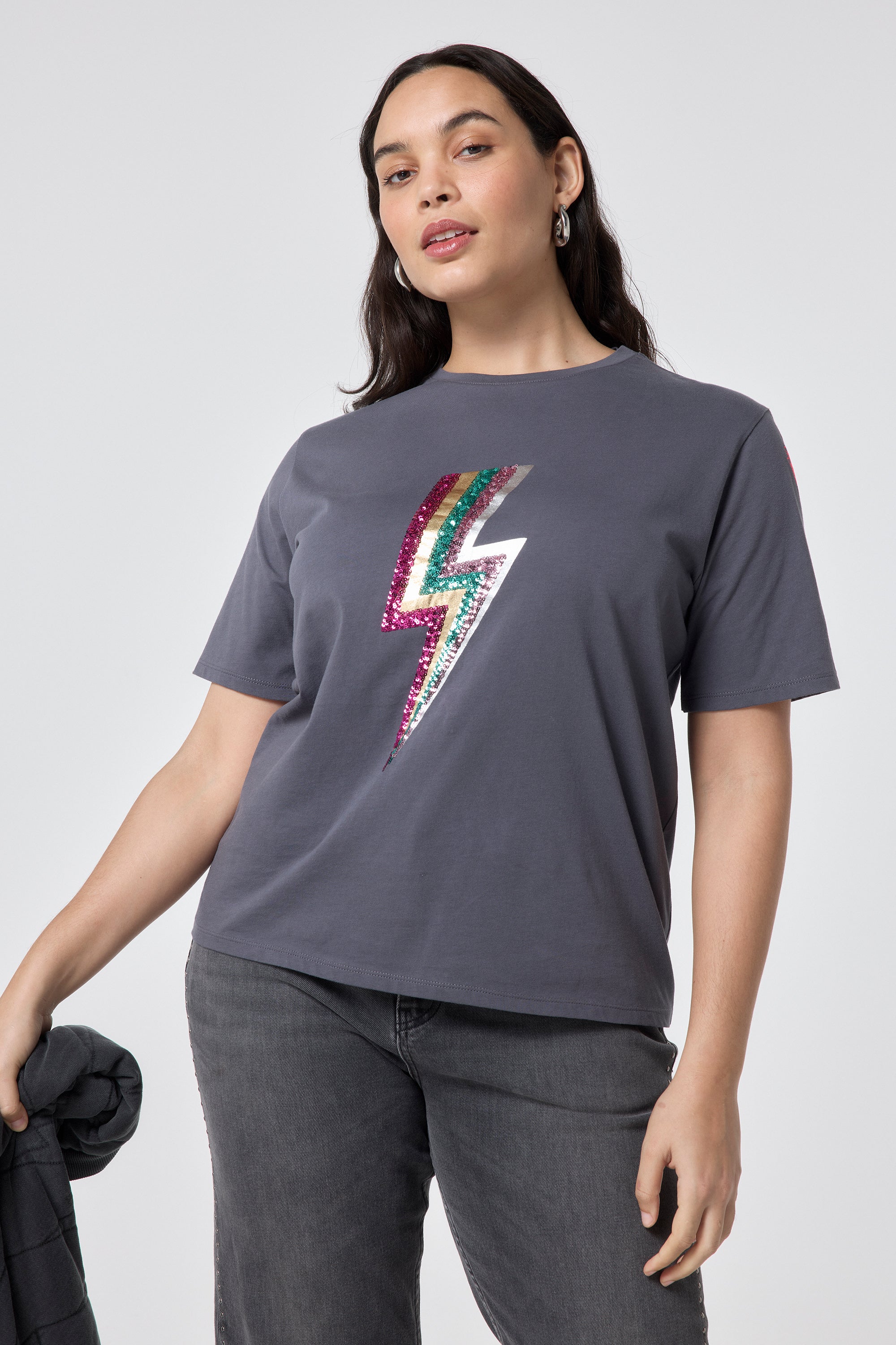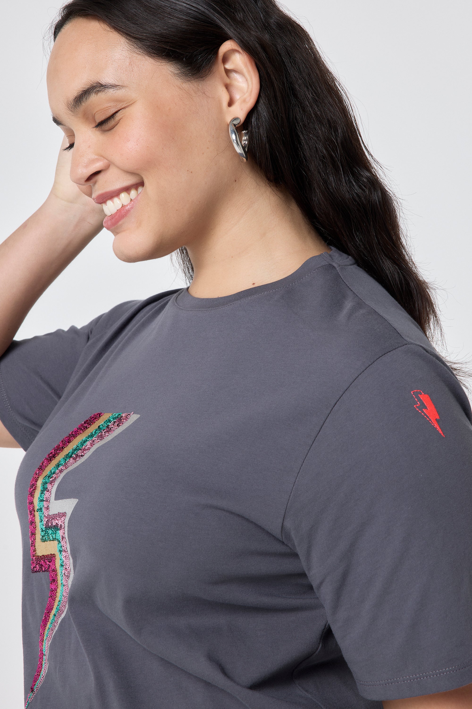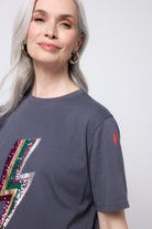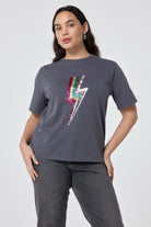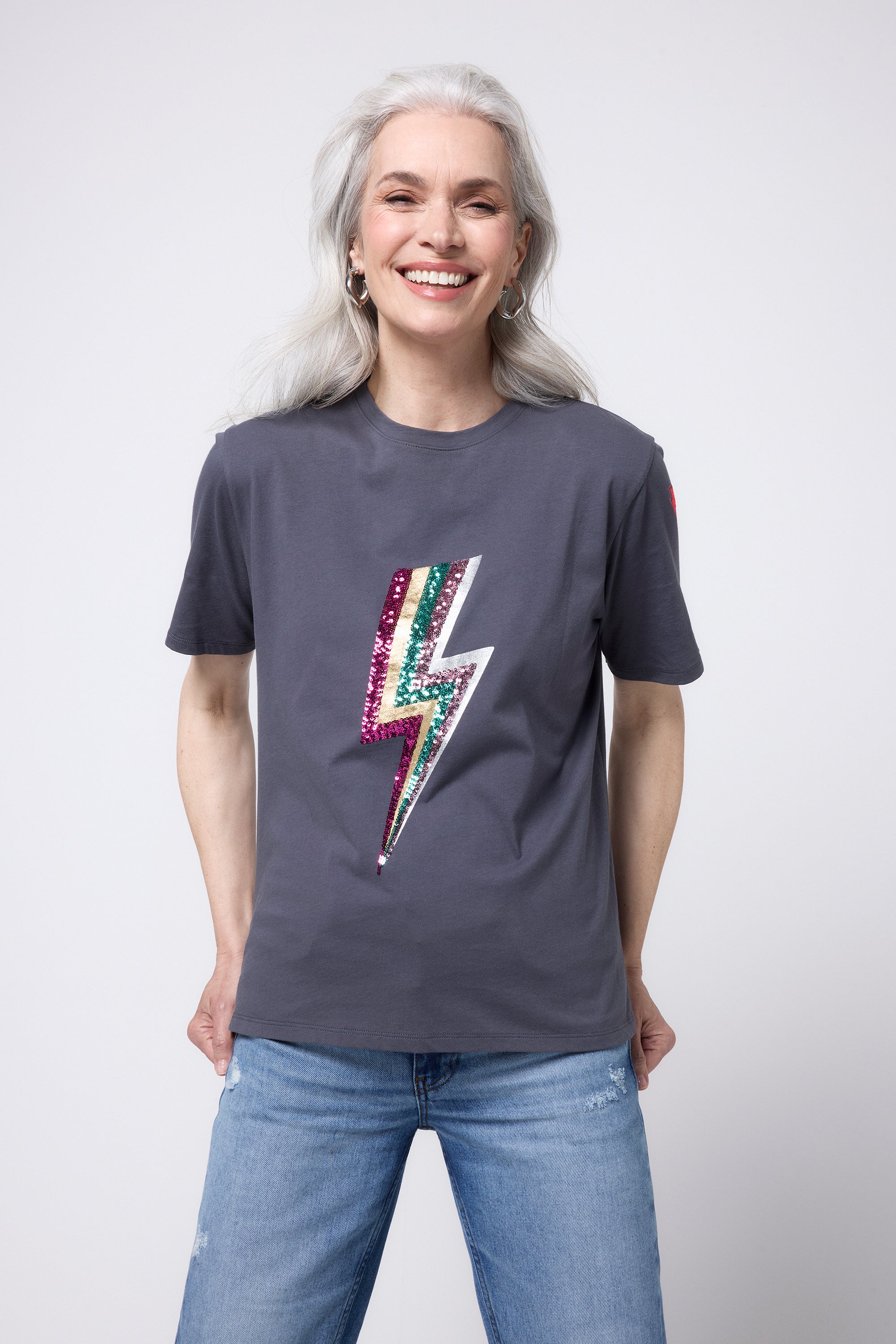 Grey with Multi Coloured Sequin and Foil Lightning Bolt T-Shirt
