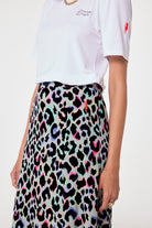 Pale Khaki with Rainbow Shadow Leopard Split Front Skirt