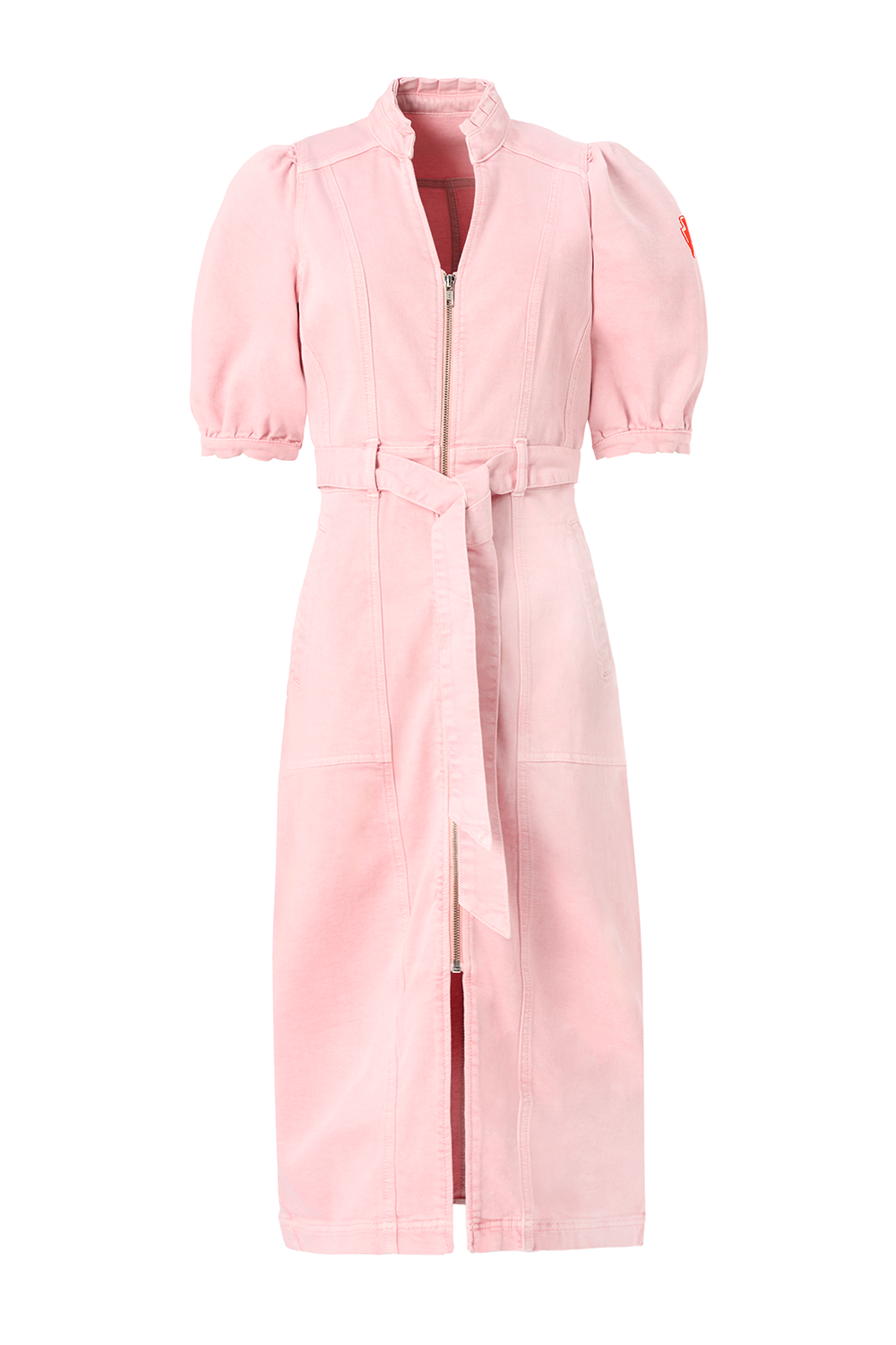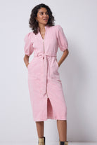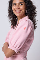 Pink Zip Detail Denim Dress